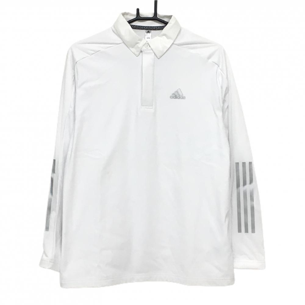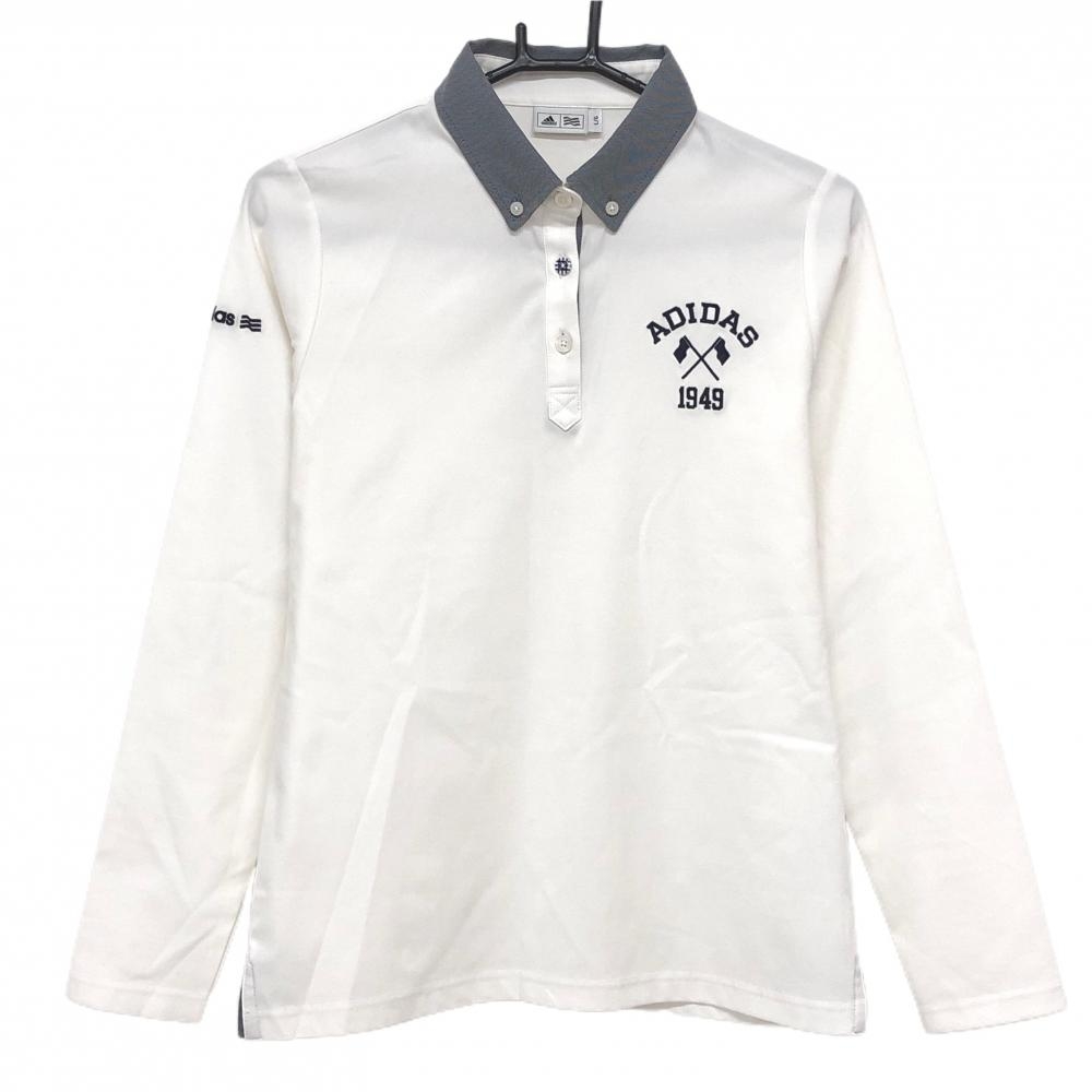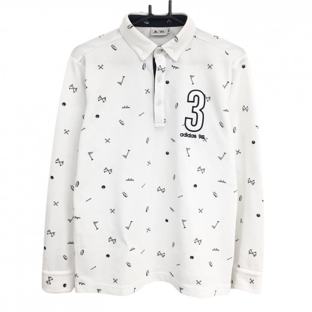 アディダス 長袖ポロシャツ 白×ネイビー 総柄 レディース L/G ゴルフウェア adidas