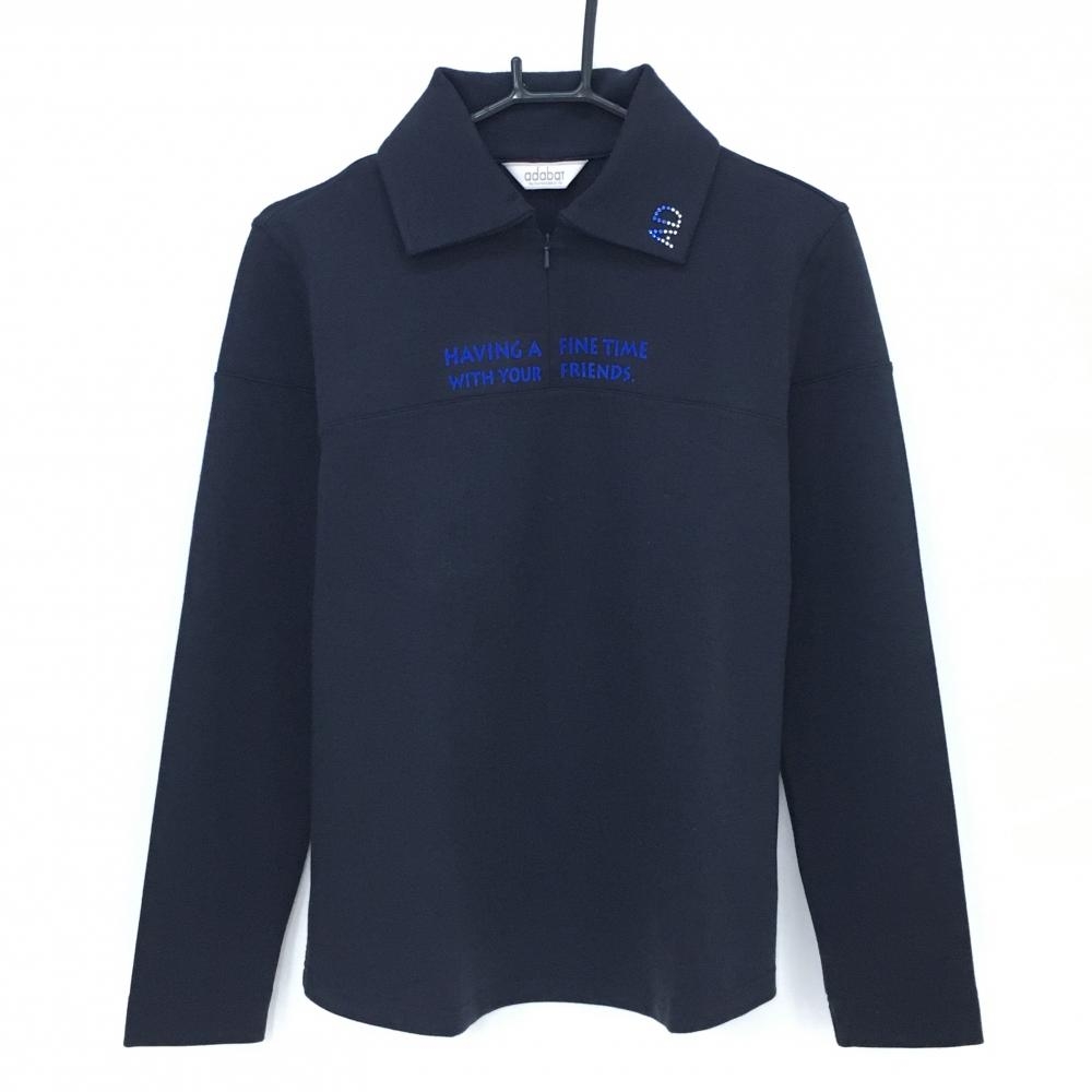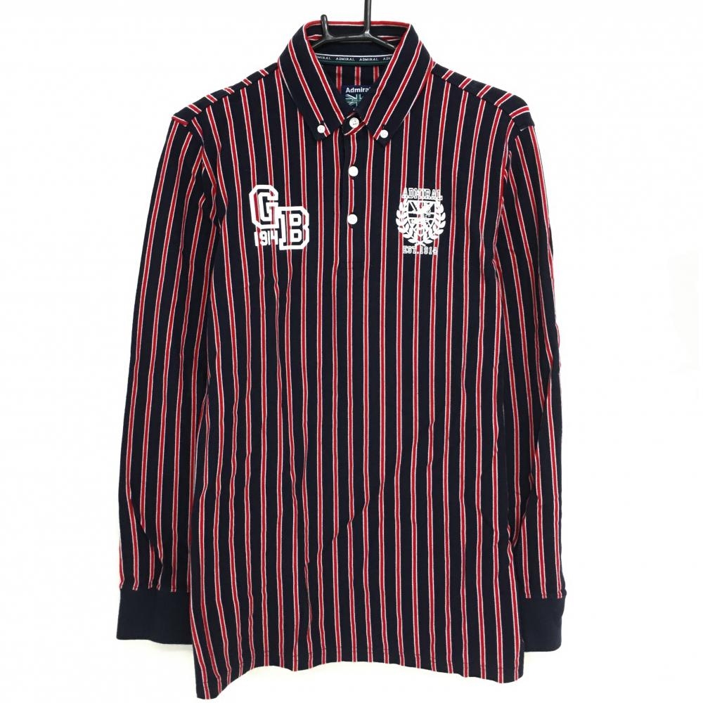 【美品】アドミラル 長袖ポロシャツ ネイビー×白 ロゴ刺しゅう 裏微起毛 メンズ LL ゴルフウェア Admiral
