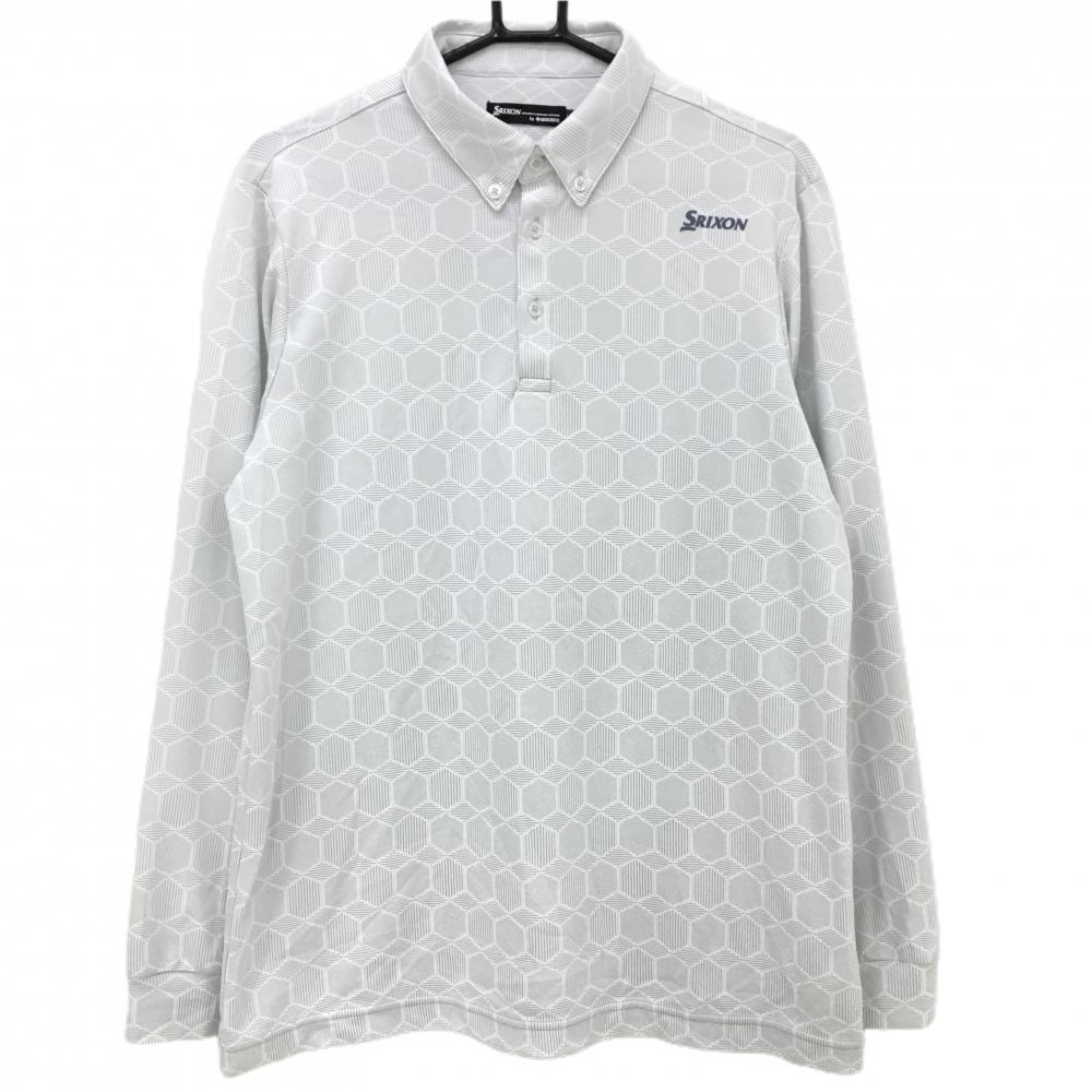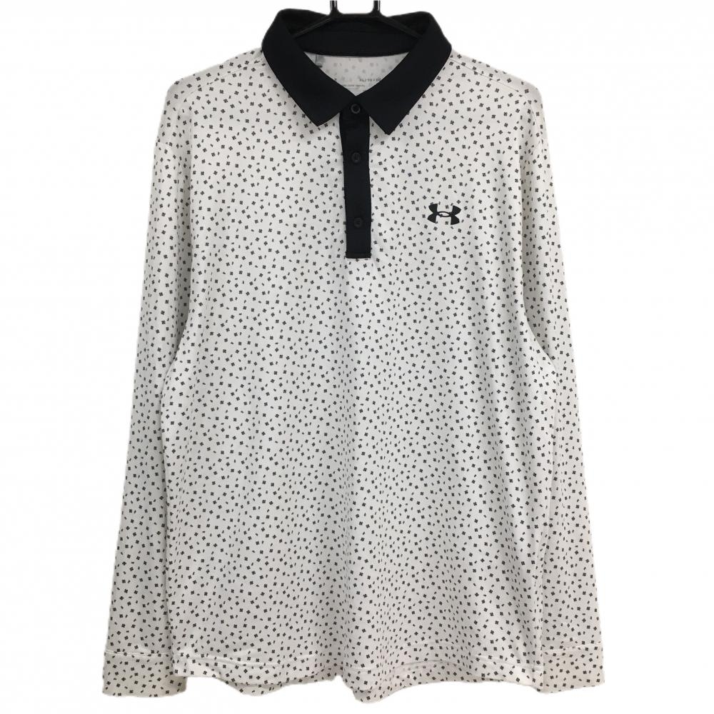 【超美品】フィラゴルフ 長袖ポロシャツ 白 ダイヤ柄地模様 ボタンダウン メンズ LL ゴルフウェア FILA GOLF
