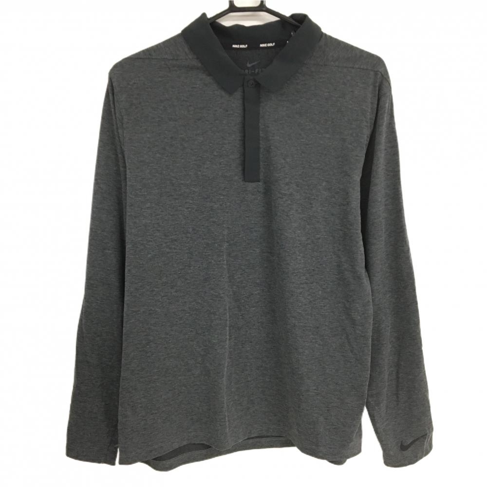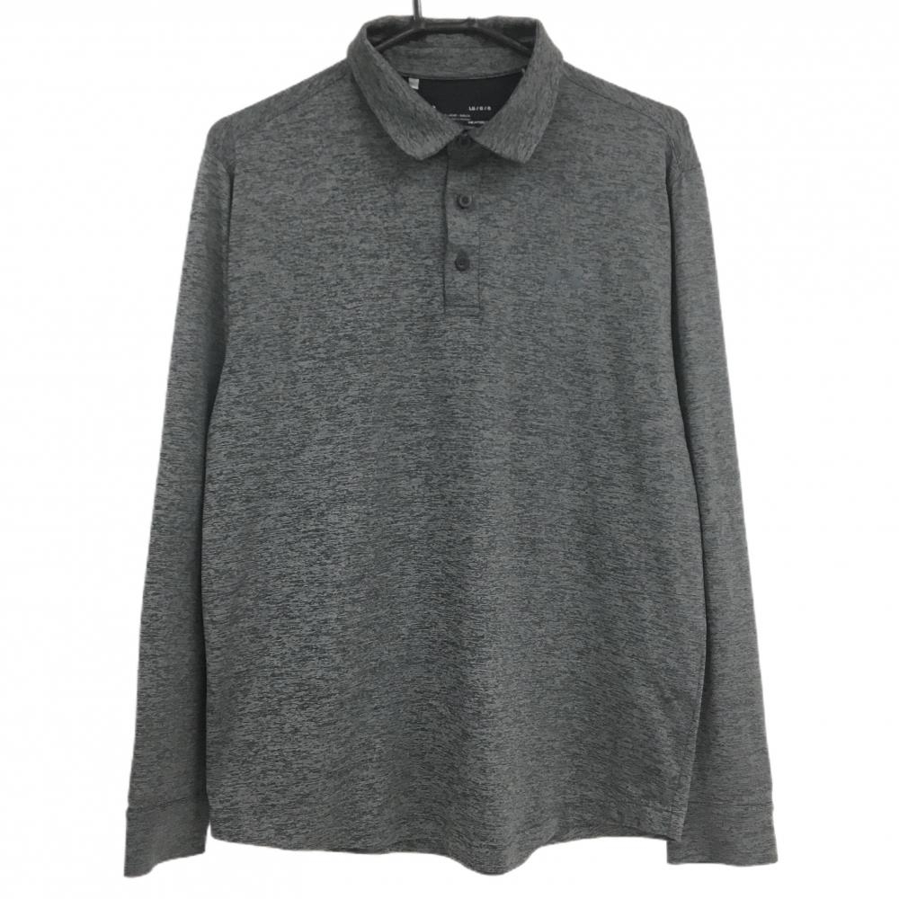 【超美品】ティゴラ 長袖ポロシャツ 杢ダークグレー ロゴ刺しゅう ボタンダウン メンズ LL ゴルフウェア TIGORA