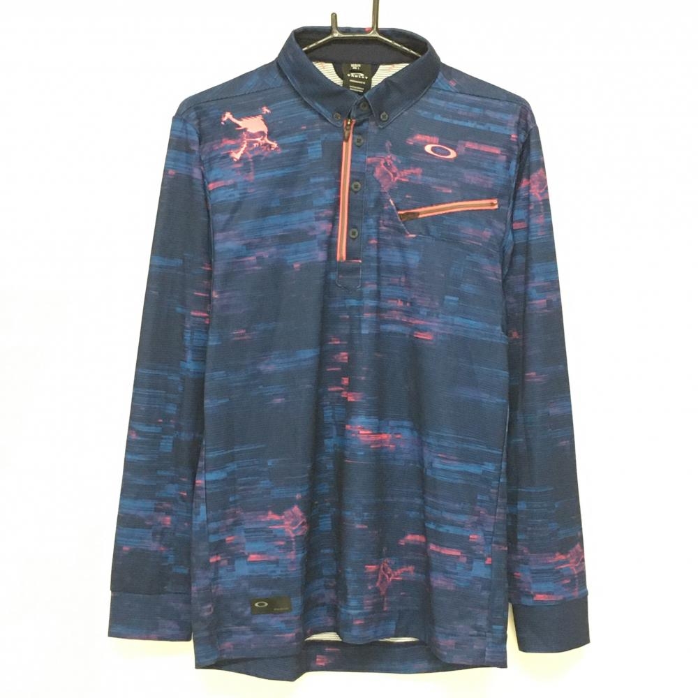 【美品】オークリー 長袖ポロシャツ ピンク系×黒 ハーフジップ 襟内側起毛 メンズ XL ゴルフウェア Oakley