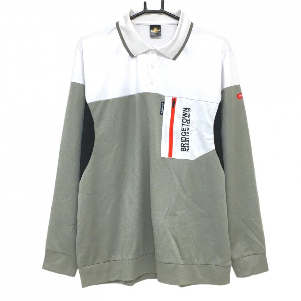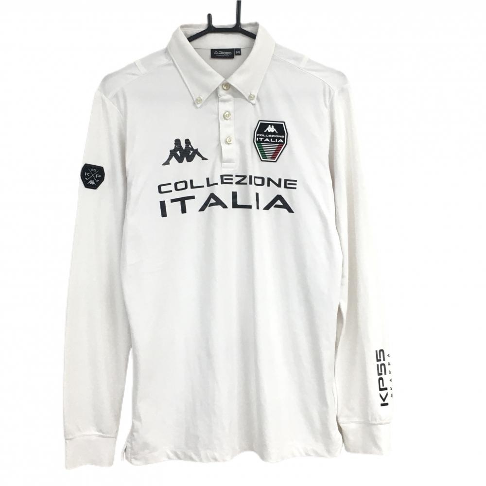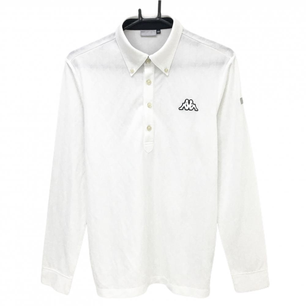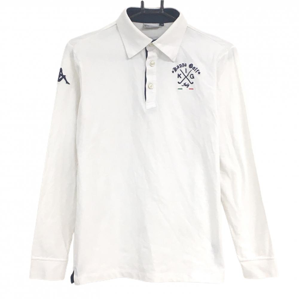 カッパ 長袖ポロシャツ 白×黒 袖ロゴライン ボタンダウン メンズ O(XL) ゴルフウェア Kappa