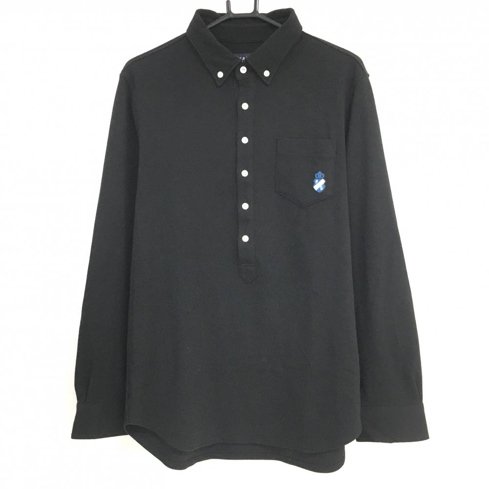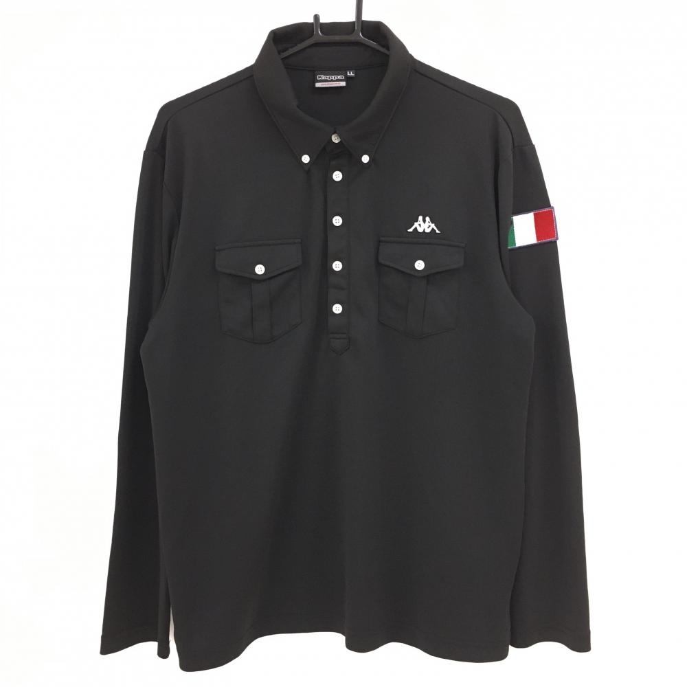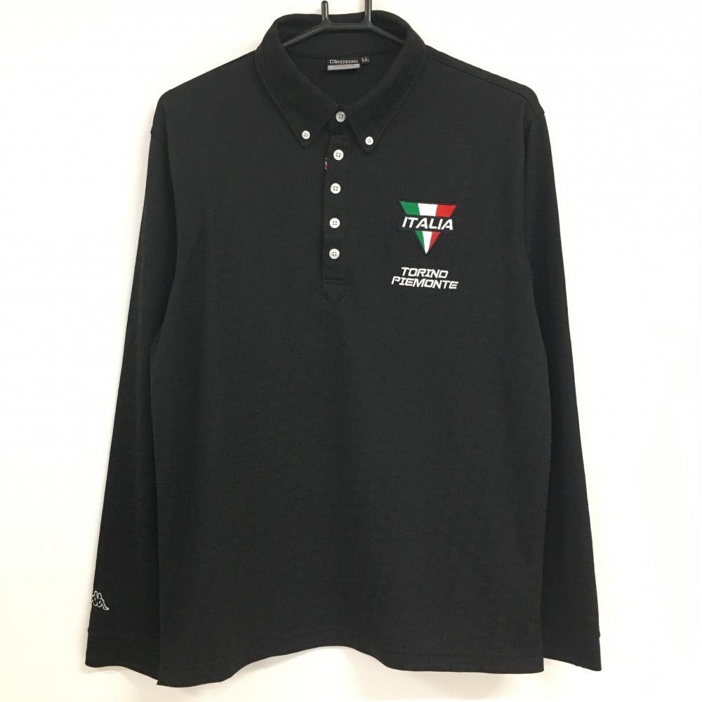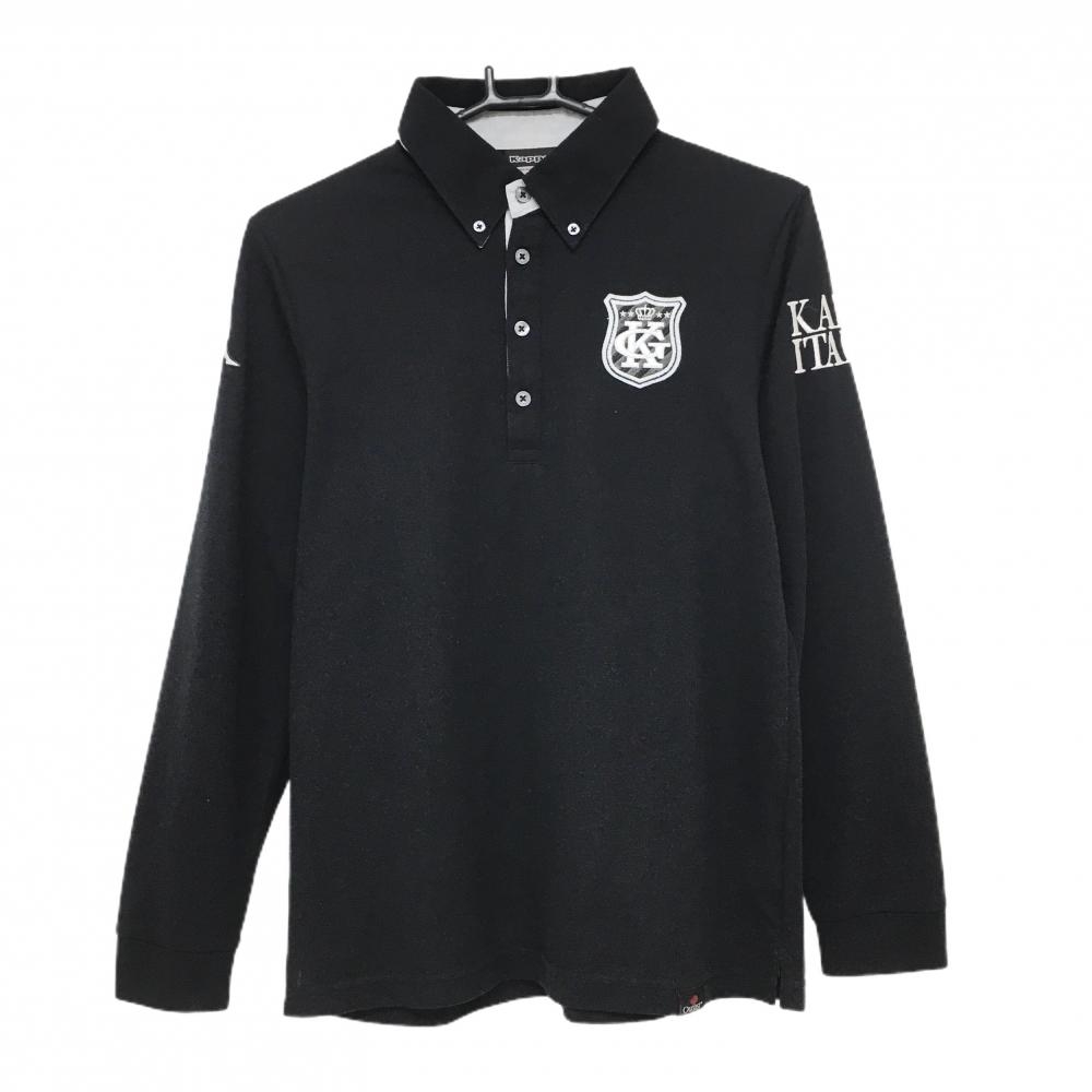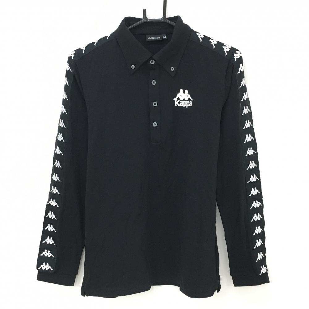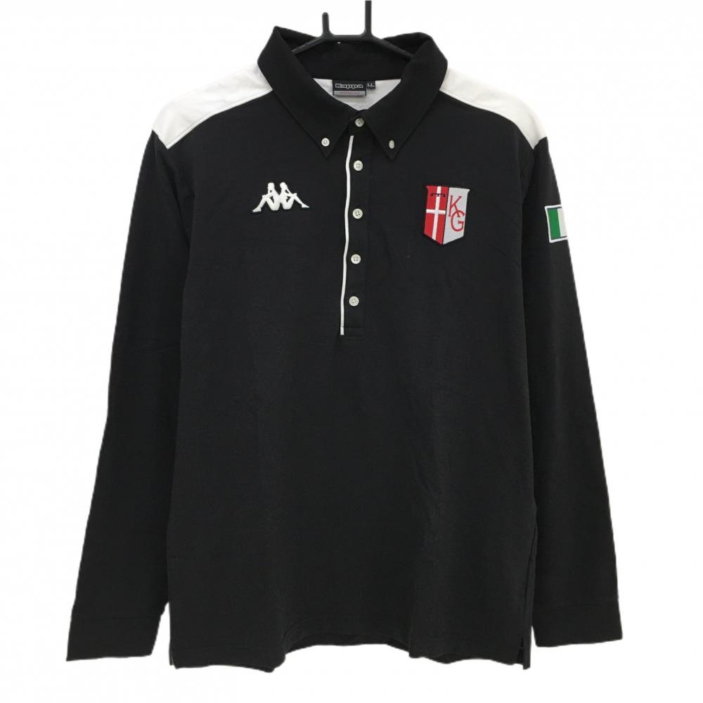 【超美品】カッパ 長袖ポロシャツ 黒×白 袖ロゴライン ボタンダウン メンズ O(XL) ゴルフウェア Kappa