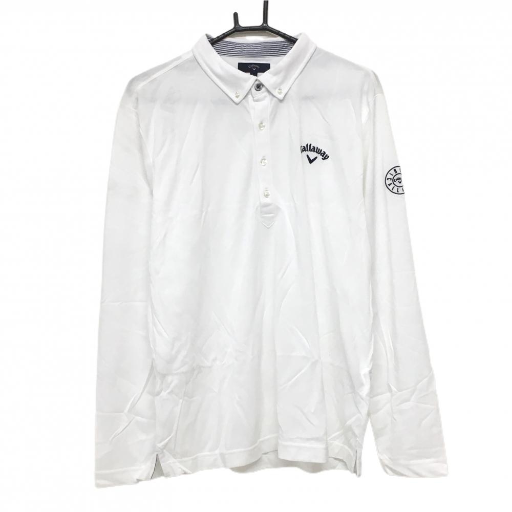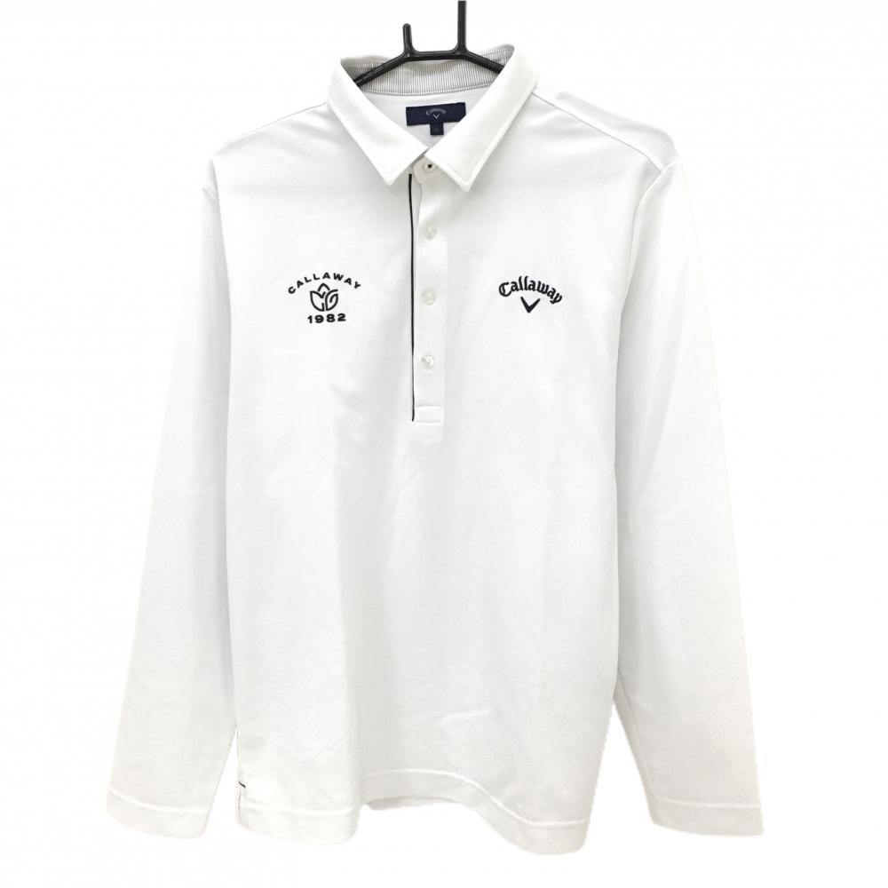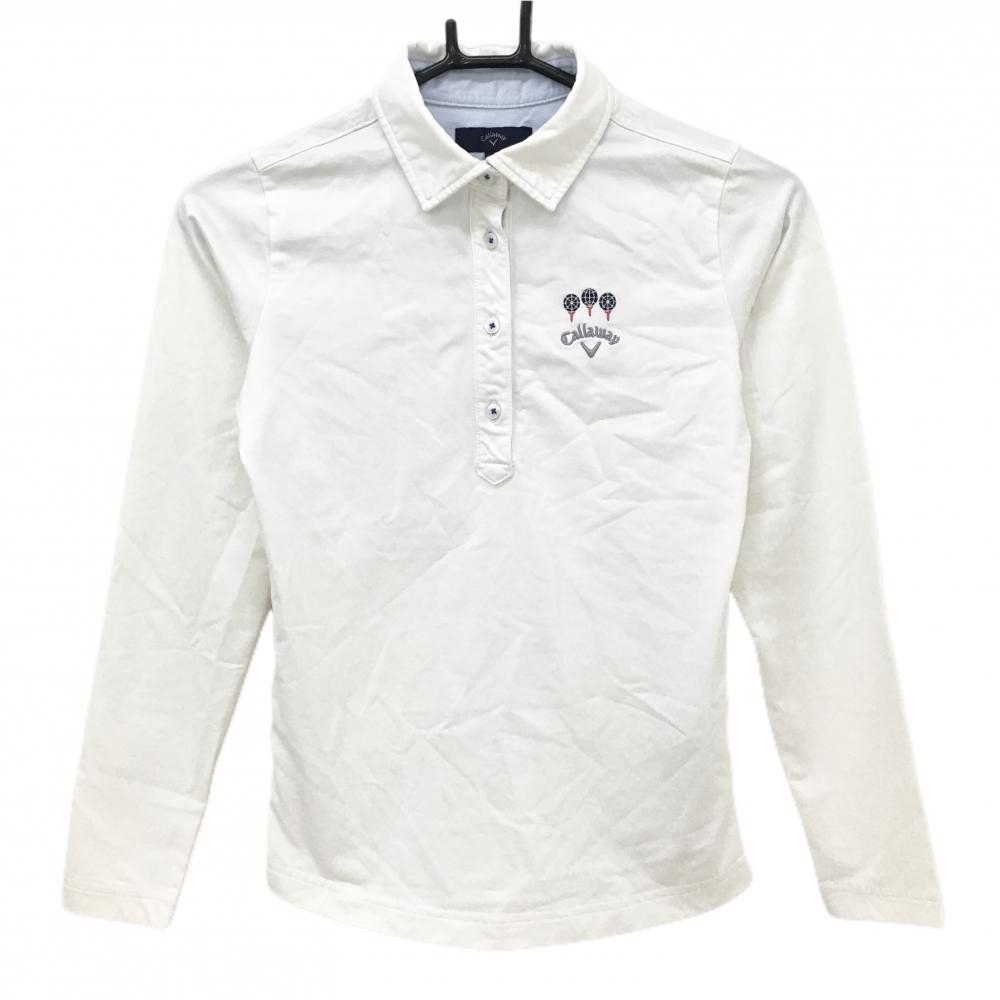 【美品】キャロウェイ 長袖ポロシャツ 白×ネイビー 微起毛 ロゴ刺しゅう レディース L ゴルフウェア Callaway