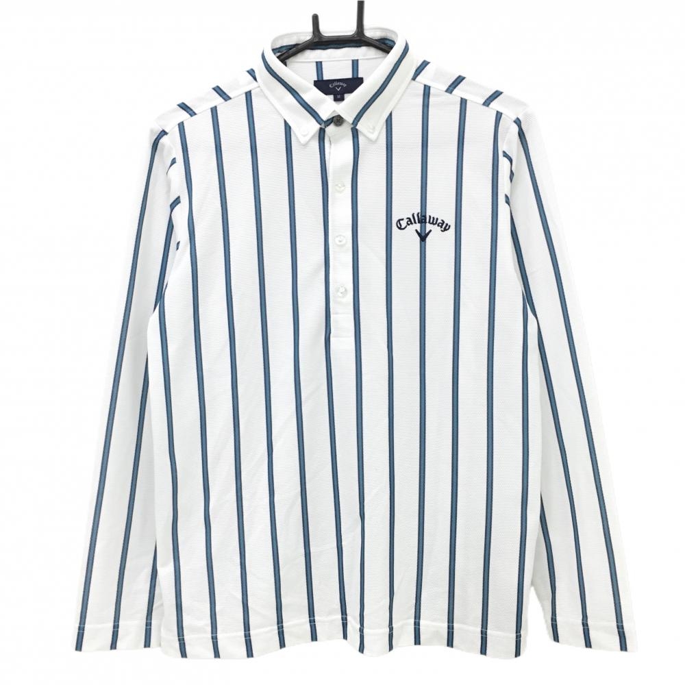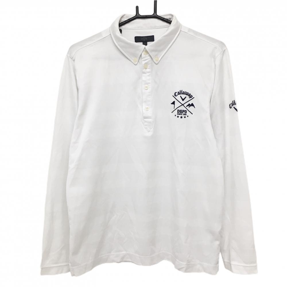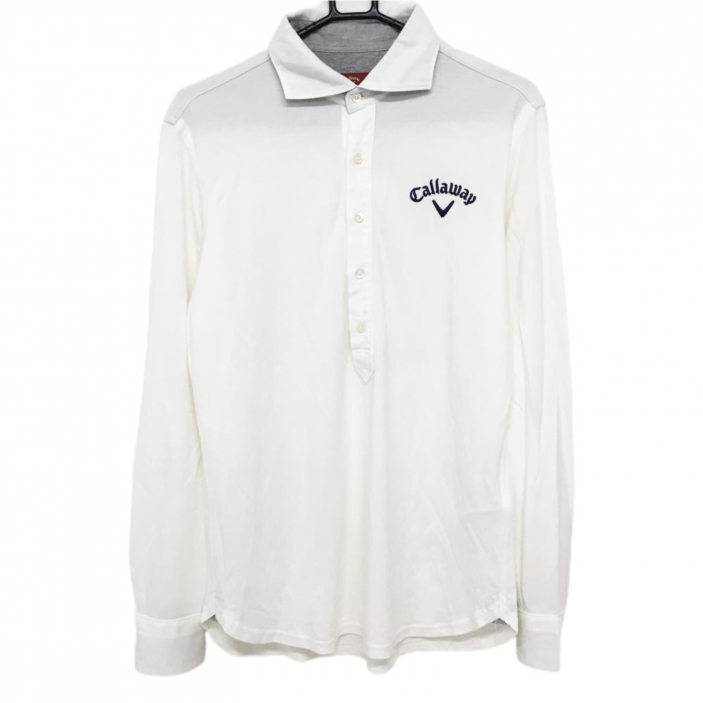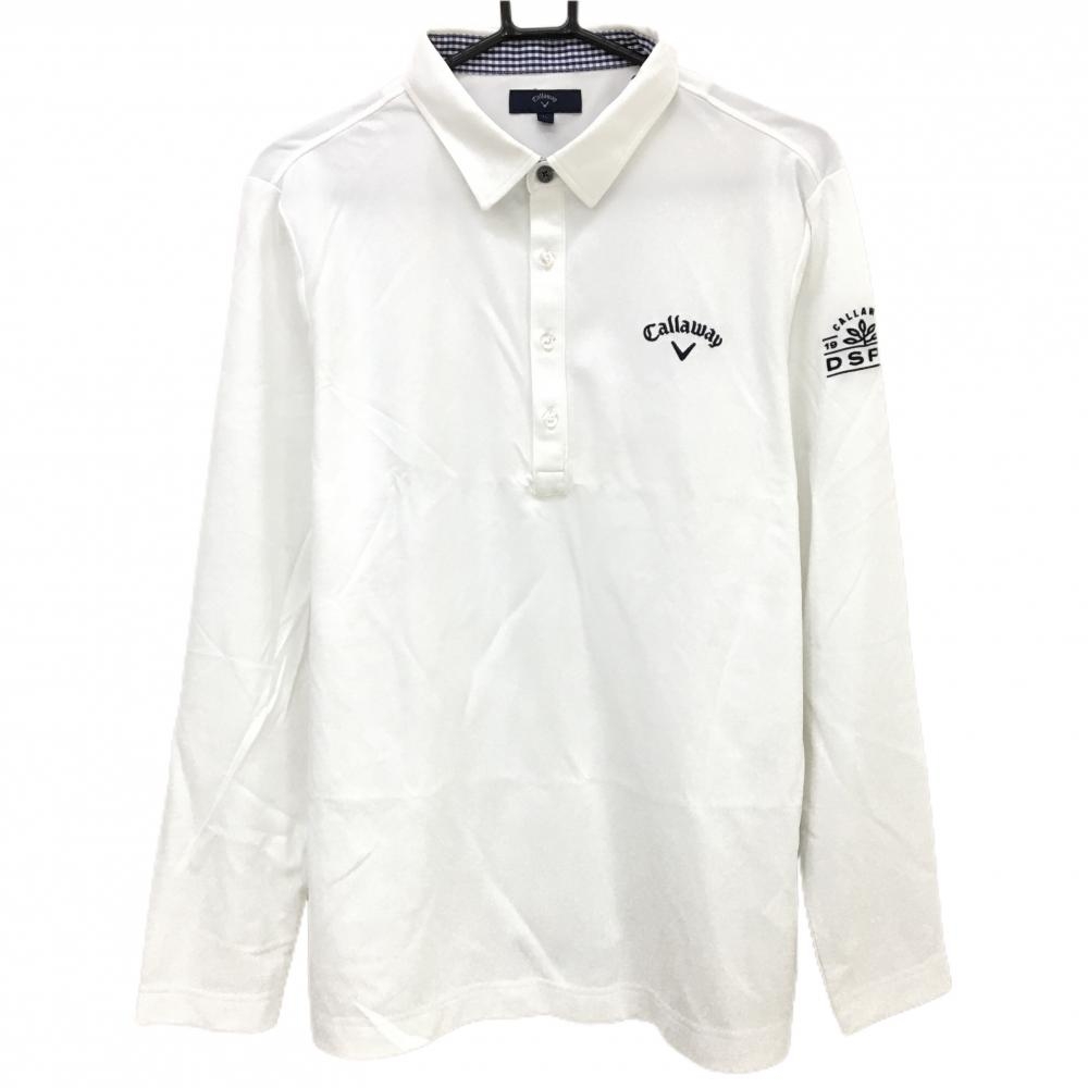 【美品】キャロウェイ 長袖ポロシャツ 白×ネイビー 微起毛 ロゴ刺しゅう レディース L ゴルフウェア Callaway