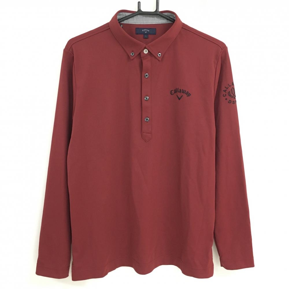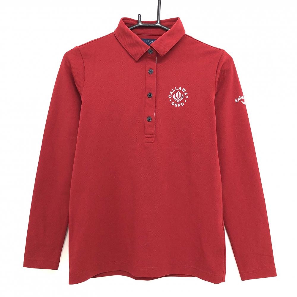 キャロウェイ 長袖ポロシャツ レッド ロゴゴールド レディース L ゴルフウェア Callaway