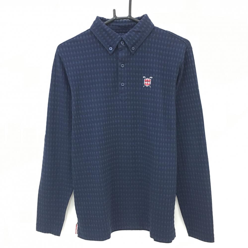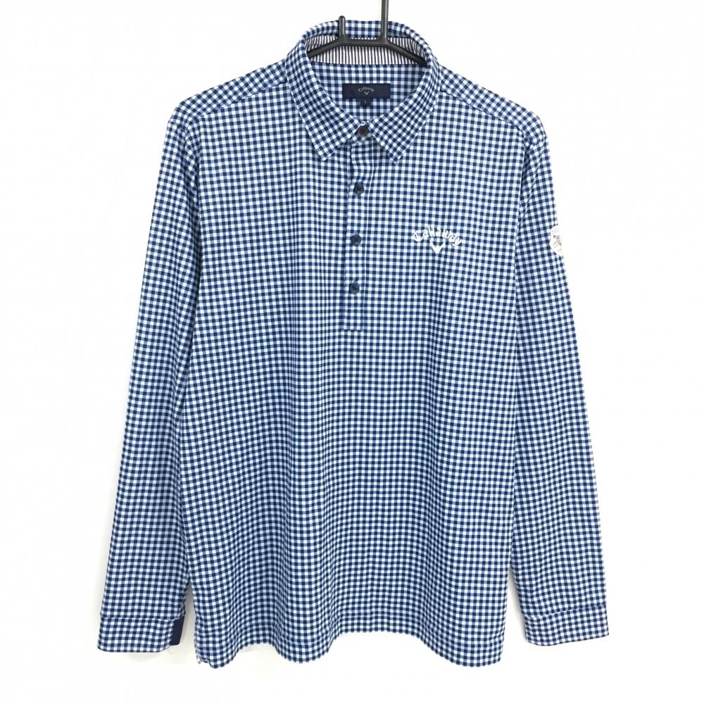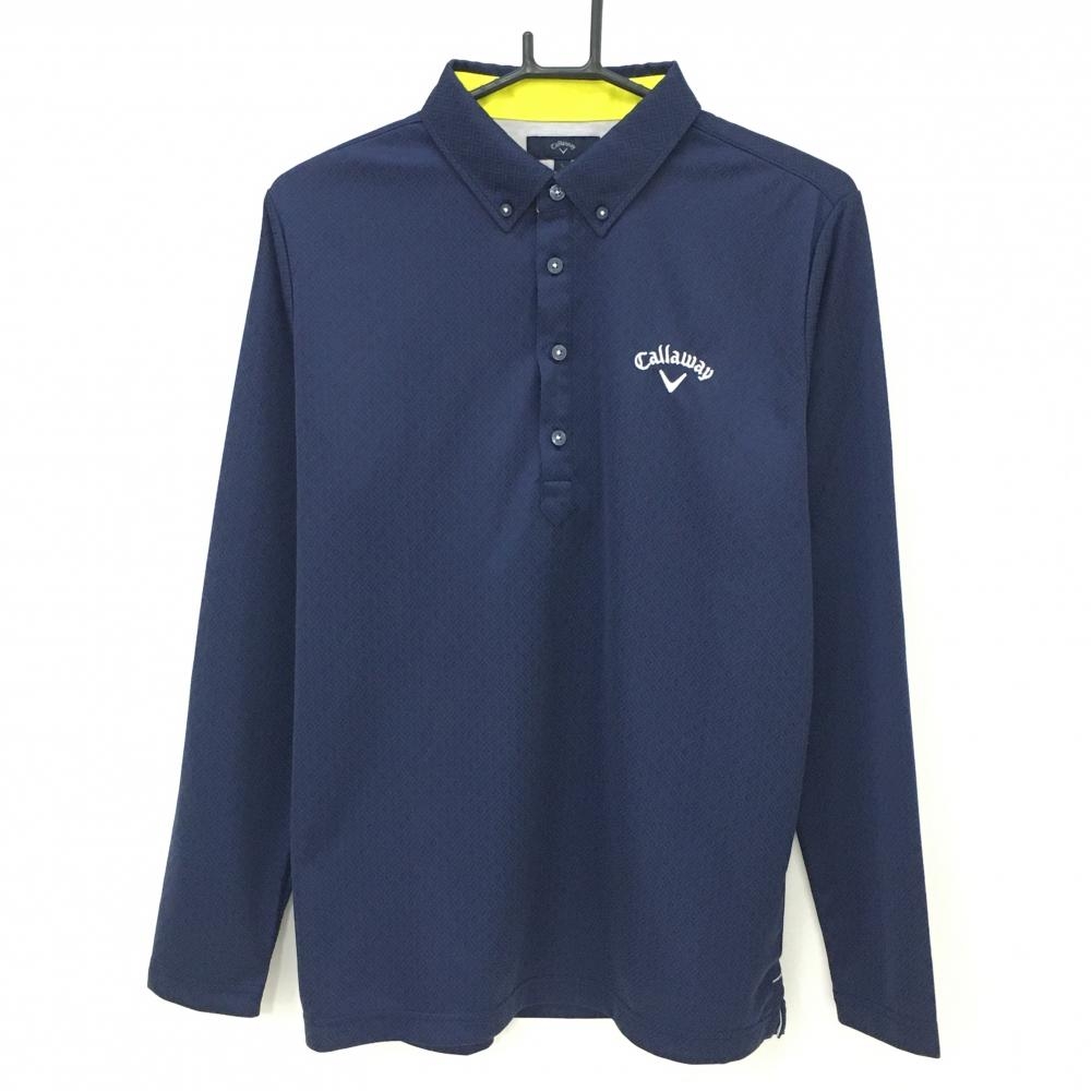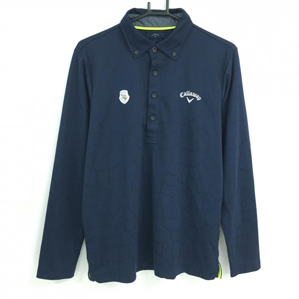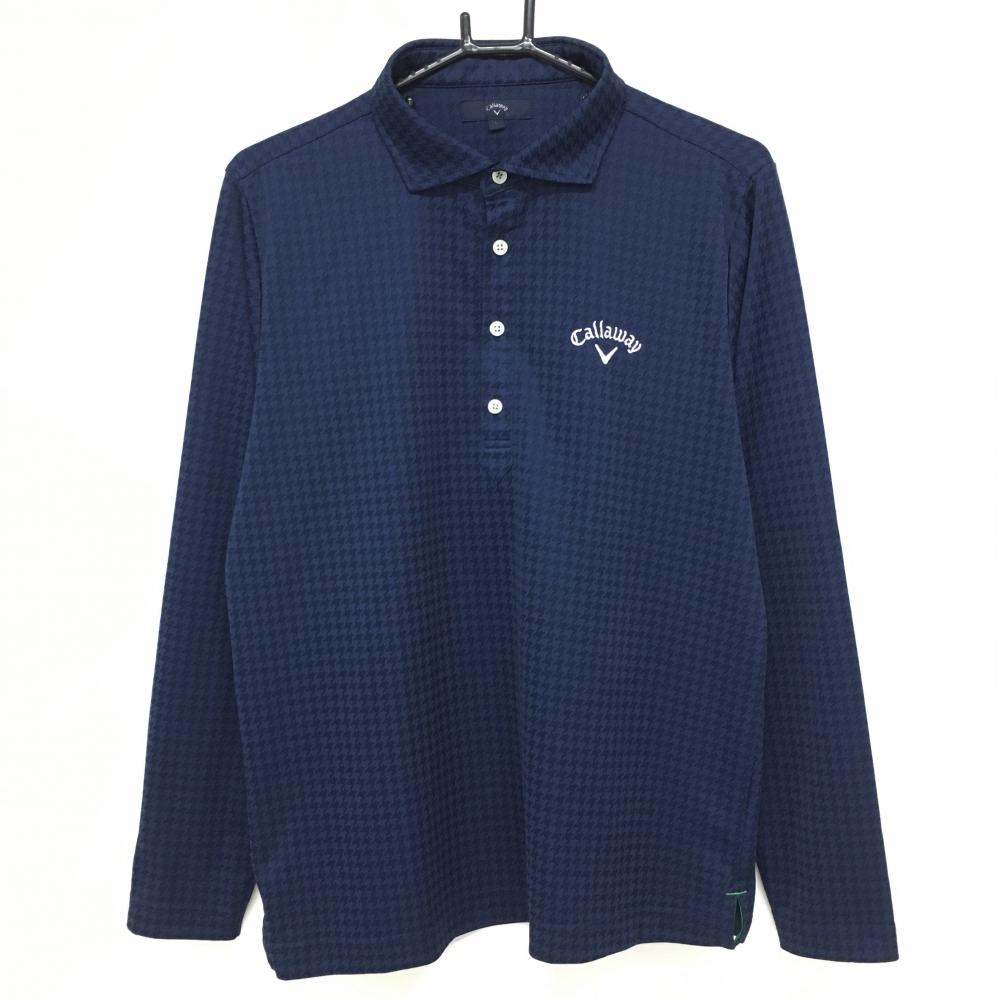 キャロウェイ 長袖ポロシャツ ネイビー 千鳥柄地模様 胸元刺しゅう メンズ L ゴルフウェア Callaway