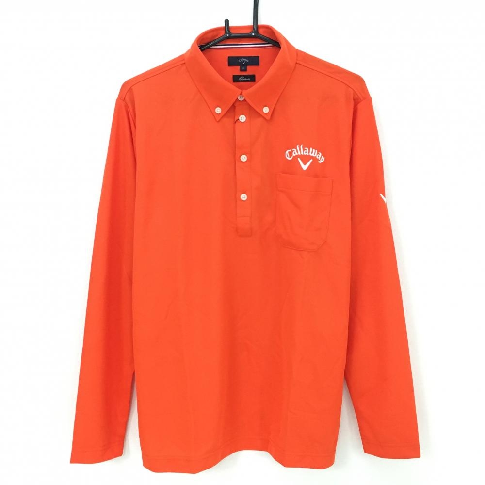 【美品】キャロウェイ 長袖ポロシャツ レッド×白 ストライプ ボタンダウン メンズ LL ゴルフウェア Callaway