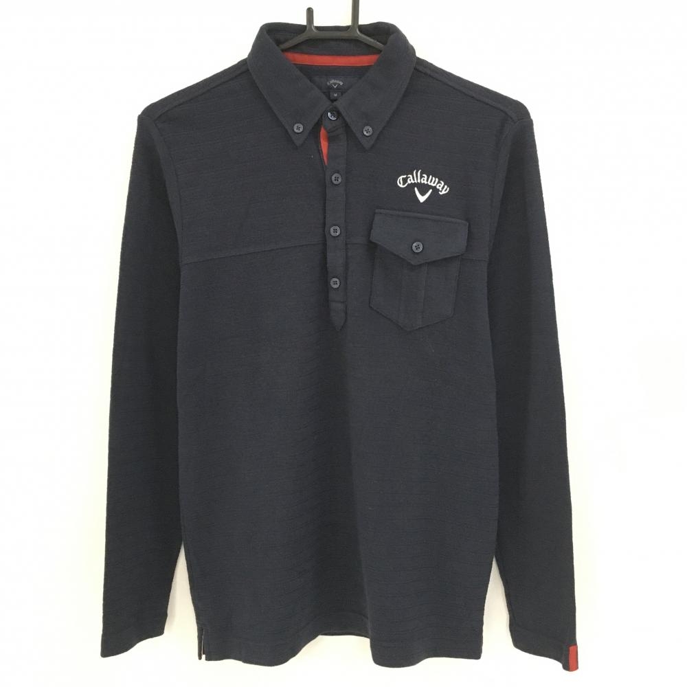 【超美品】キャロウェイ 長袖ポロシャツ ネイビー ヘリンボーン織生地 ボタンダウン 裏起毛 メンズ LL ゴルフウェア Callaway