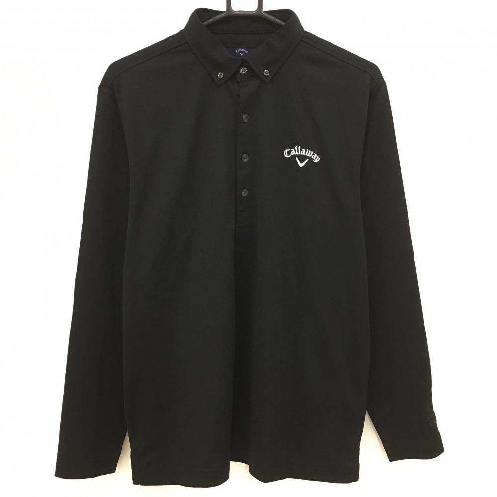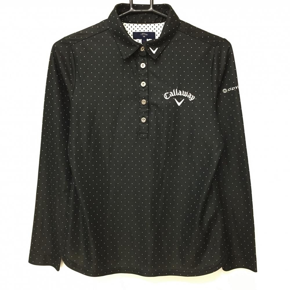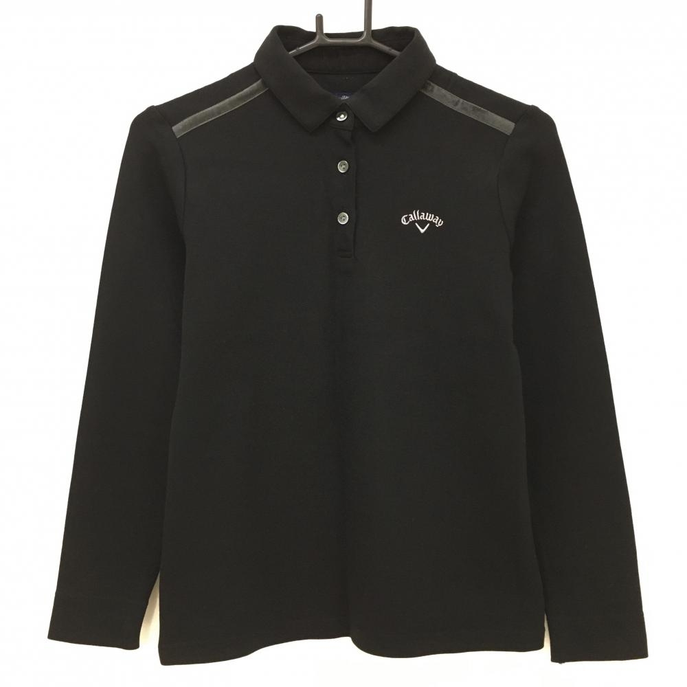 【美品】キャロウェイ 長袖ポロシャツ 黒×ゴールド ロゴ刺しゅう レディース L ゴルフウェア 2023年モデル Callaway