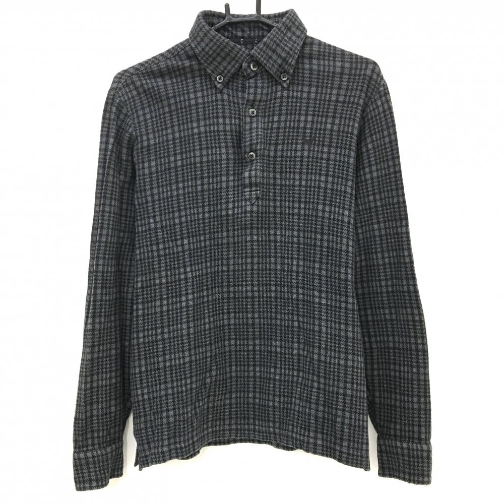 【超美品】プーマ 長袖ポロシャツ 黒×ダークグレー 切替 裏微起毛 袖ワッペン メンズ M ゴルフウェア PUMA