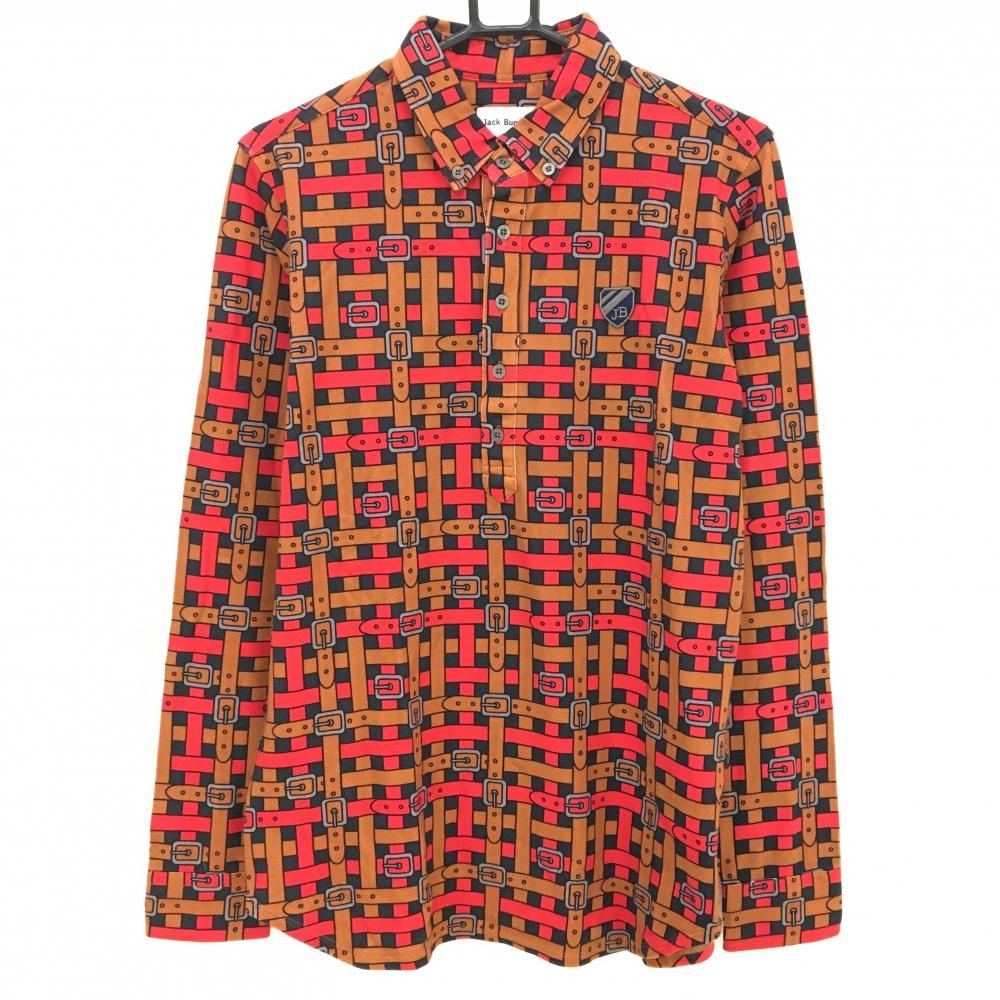 ジャックバニー 長袖ポロシャツ 白×レッド スキーヤー柄 メンズ 6(XL) ゴルフウェア Jack Bunny