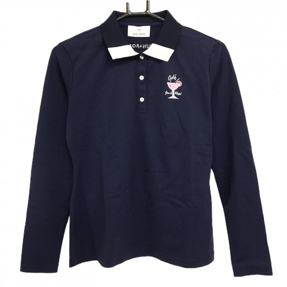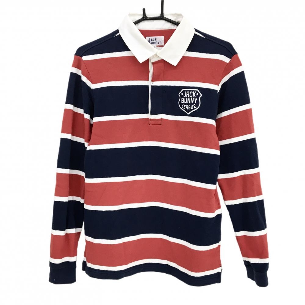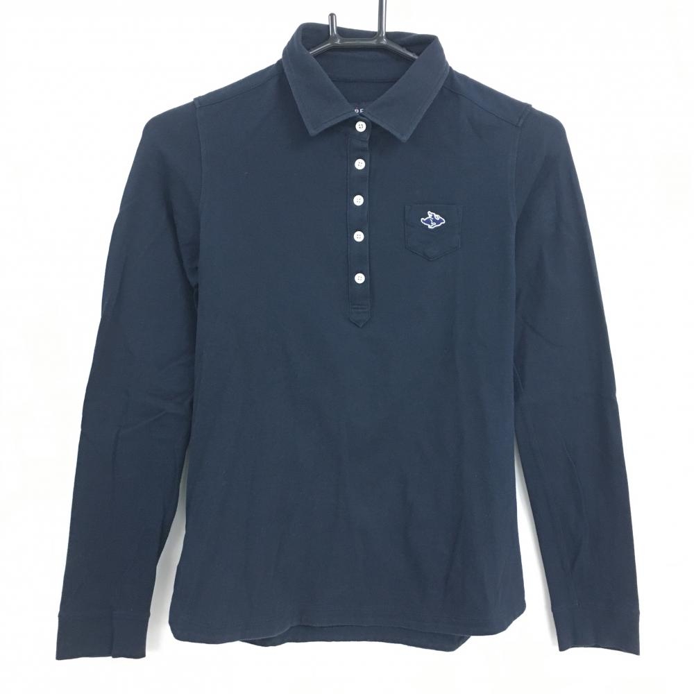 ジャックバニー 長袖ポロシャツ ネイビー 襟白 胸ロゴ コットン100% レディース 0(S) ゴルフウェア Jack Bunny