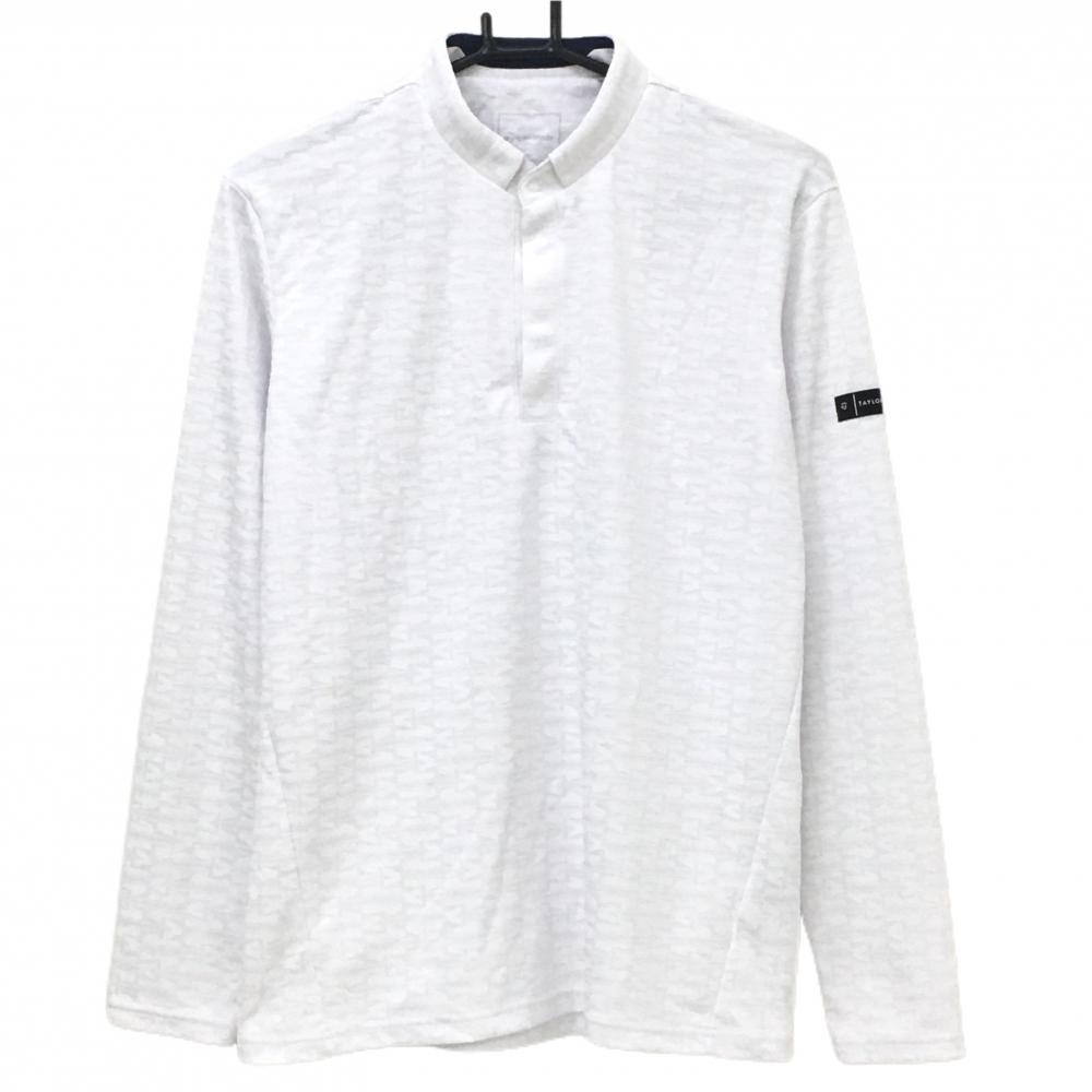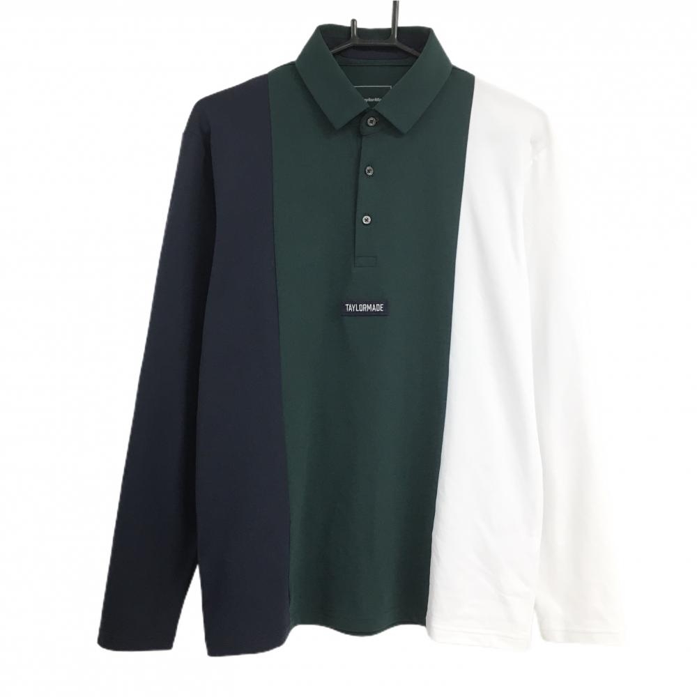テーラーメイド 長袖ポロシャツ 黒×白 肩ロゴ メンズ L ゴルフウェア TaylorMade