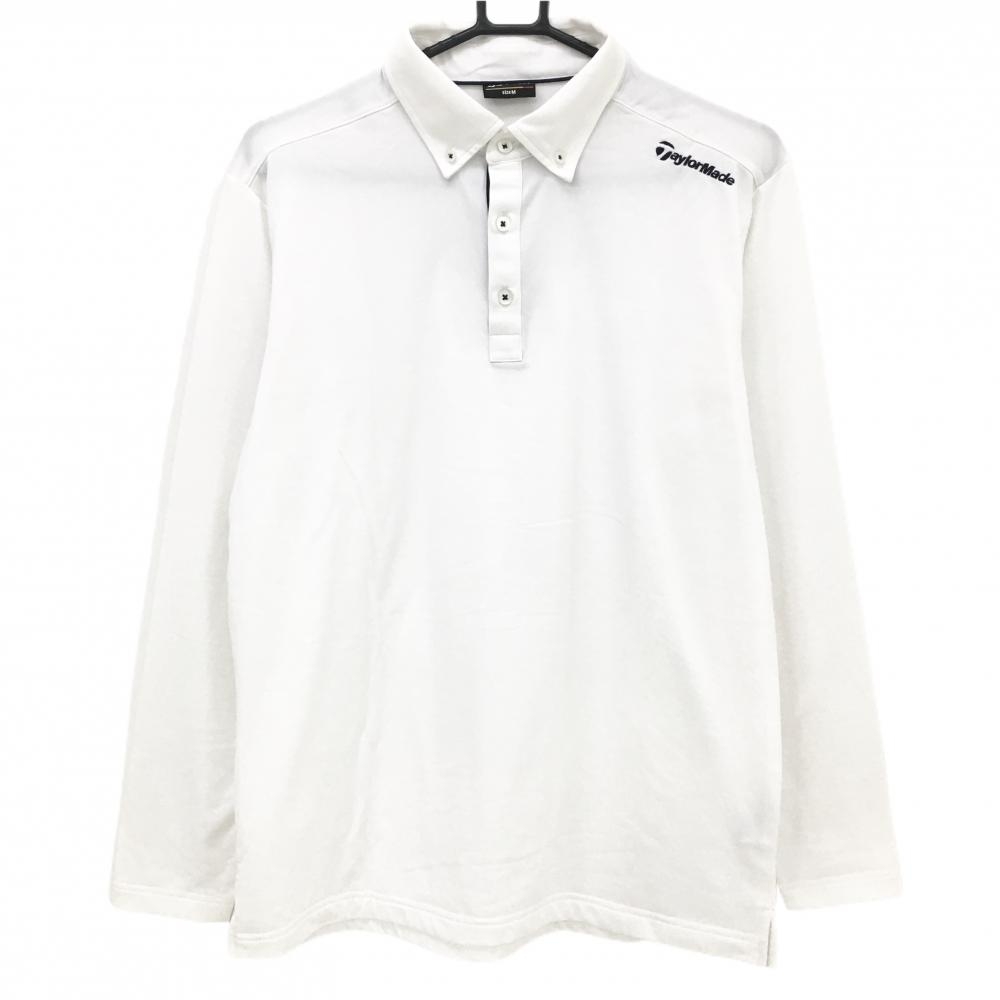テーラーメイド 長袖ポロシャツ 黒×白 肩ロゴ スナップボタン メンズ M ゴルフウェア TaylorMade
