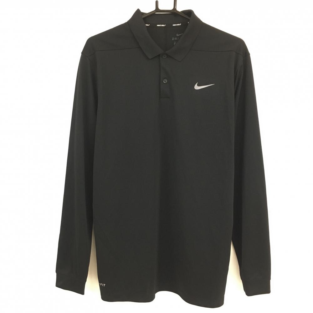 ナイキゴルフ 長袖ポロシャツ ライトグリーン×ブルー ボーダー ロゴ刺しゅう DRI-FIT メンズ L ゴルフウェア NIKE