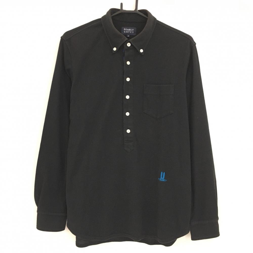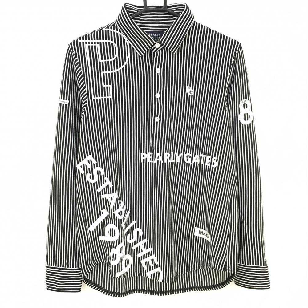 【超美品】パーリーゲイツ 長袖ポロシャツ 黒×グレー ボーダー 胸ポケット メンズ 4(M) ゴルフウェア PEARLY GATES