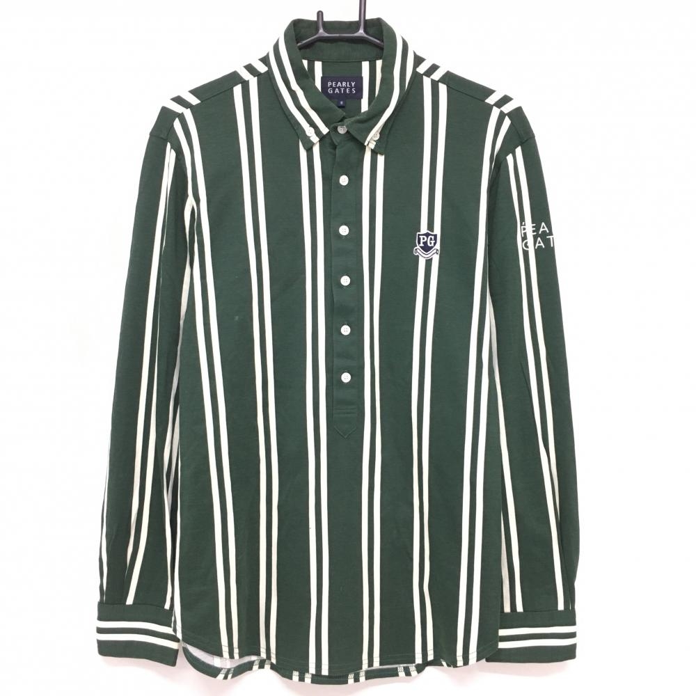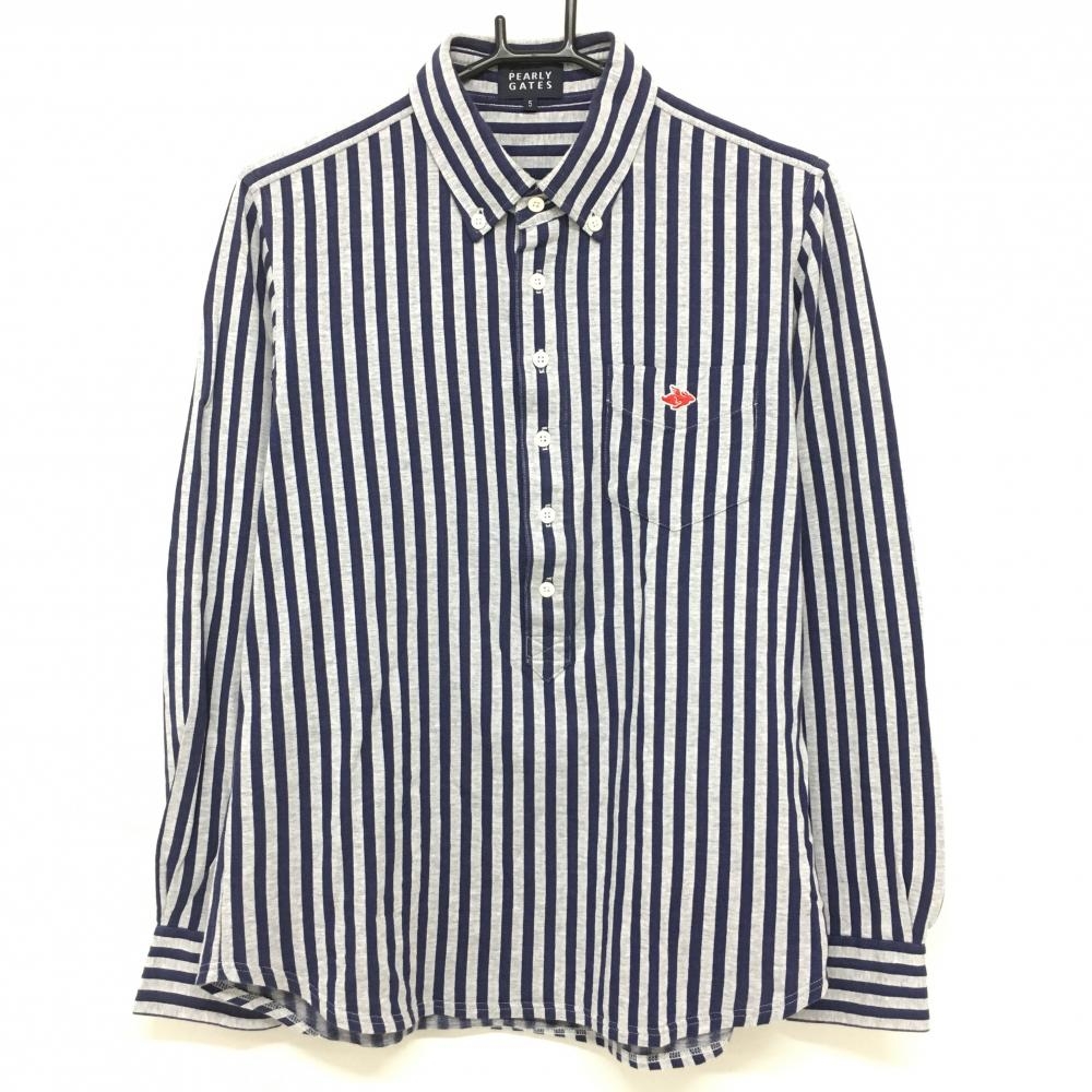 パーリーゲイツ 長袖ポロシャツ 白×ネイビー ストライプ ボタンダウン メンズ 6(XL) ゴルフウェア PEARLY GATES