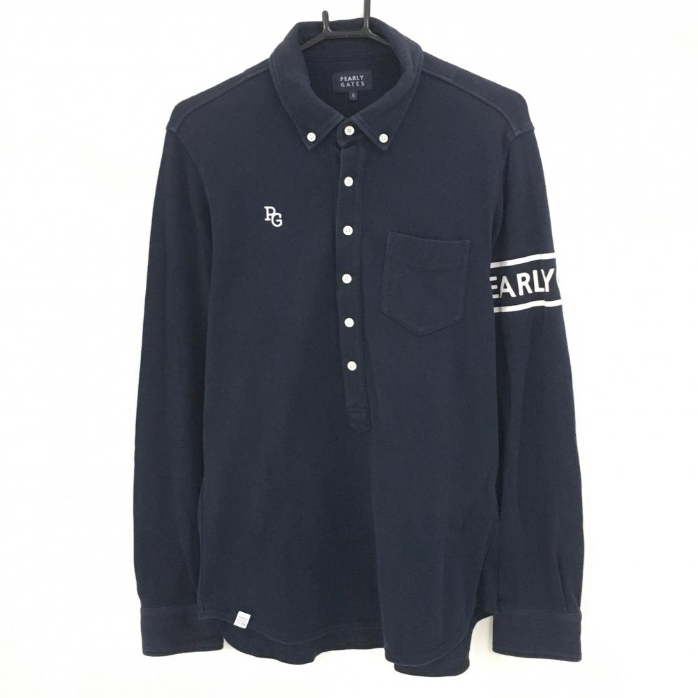 【美品】パーリーゲイツ 長袖ポロシャツ ダークネイビー ボタンダウン 胸ポケット レディース 1(M) ゴルフウェア PEARLY GATES