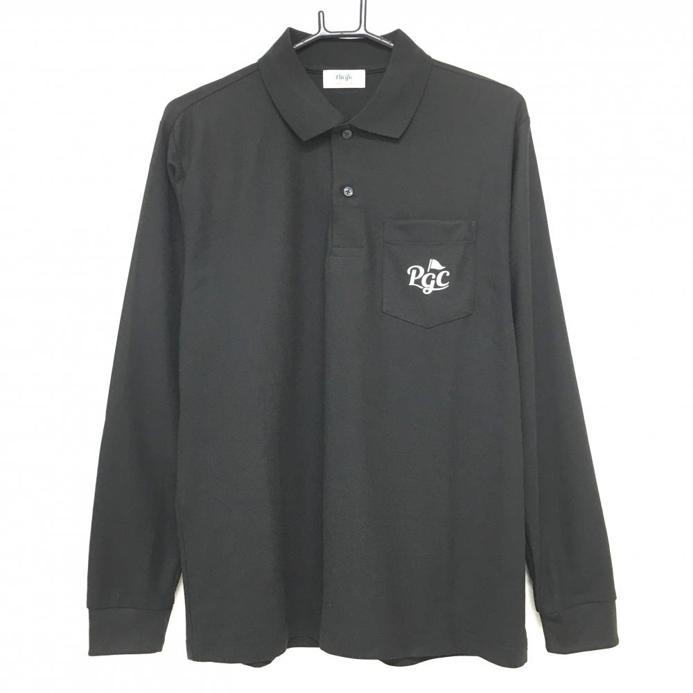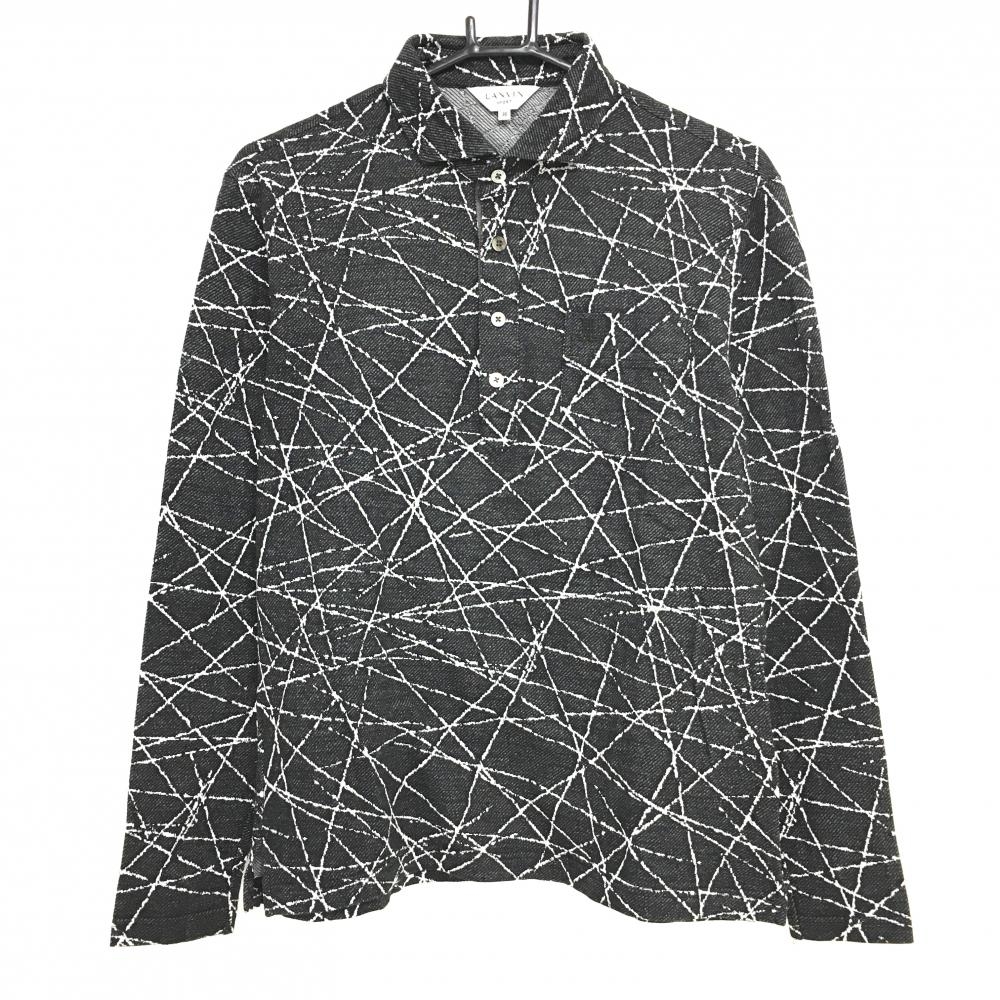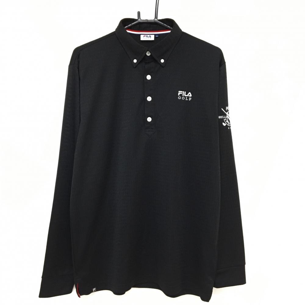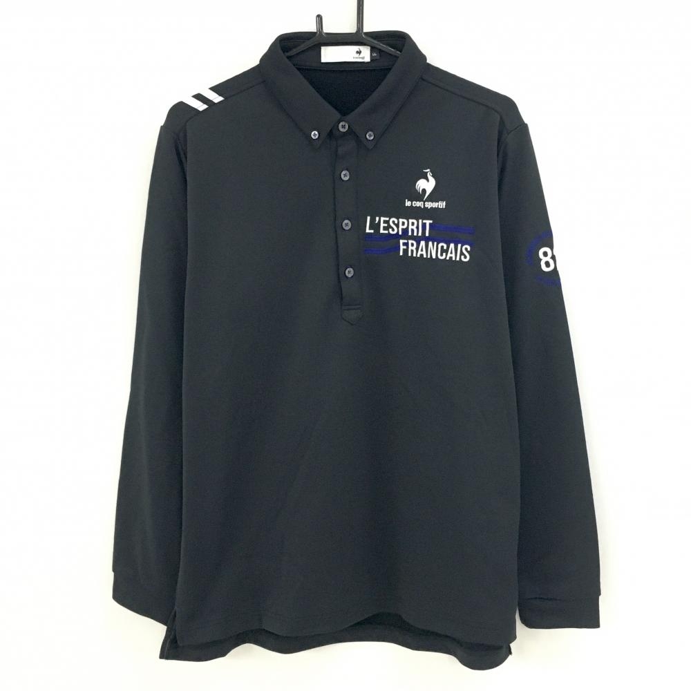 【美品】ルコックゴルフ 長袖ポロシャツ 黒 総柄地模様 ボタンダウン ロゴ刺しゅう メンズ L ゴルフウェア le coq sportif