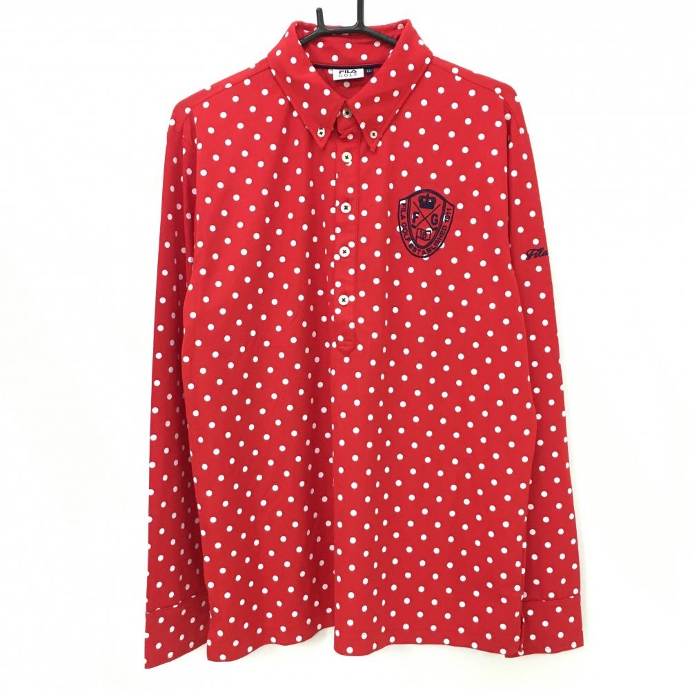 【超美品】キャロウェイ 長袖ポロシャツ レッド×ネイビー×白 ドット ボタンダウン メンズ L ゴルフウェア Callaway