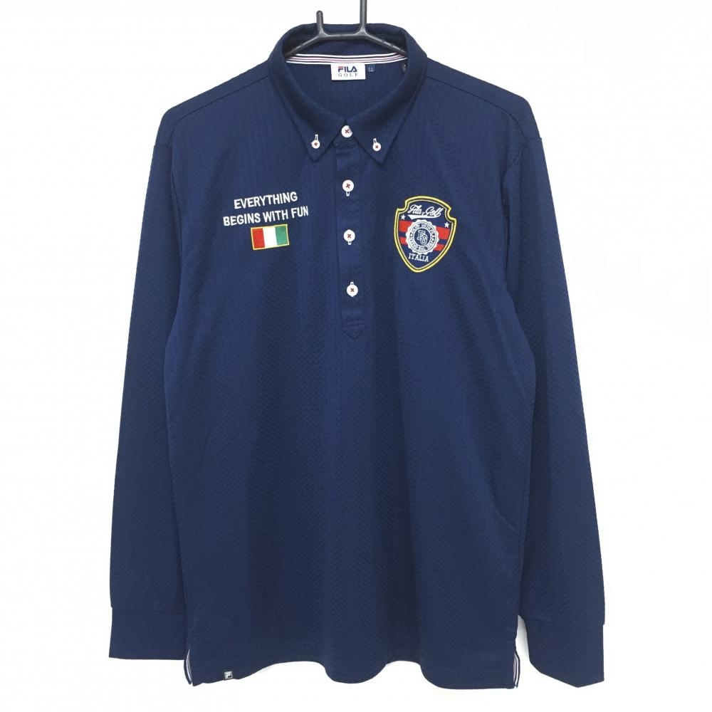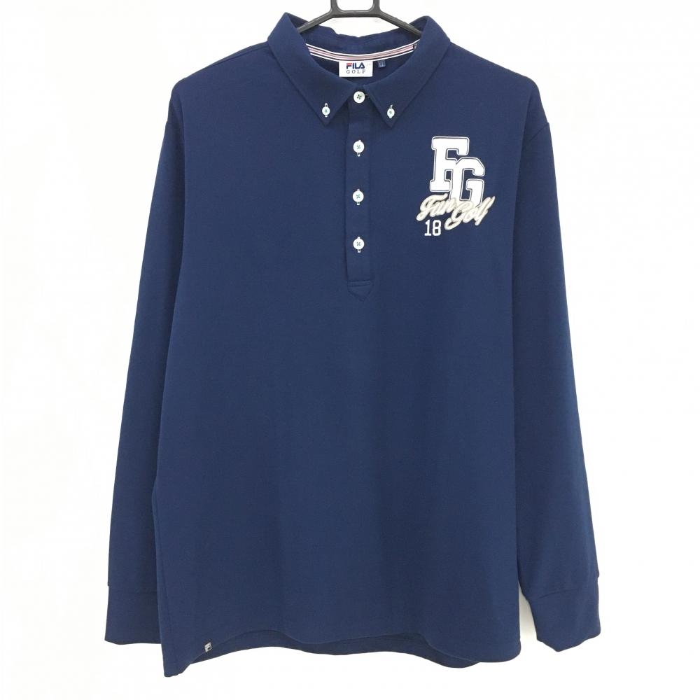 フィラゴルフ 長袖ポロシャツ オレンジ系 総柄地模様 ロゴネイビー 裏起毛 ボタンダウン メンズ L ゴルフウェア FILA GOLF