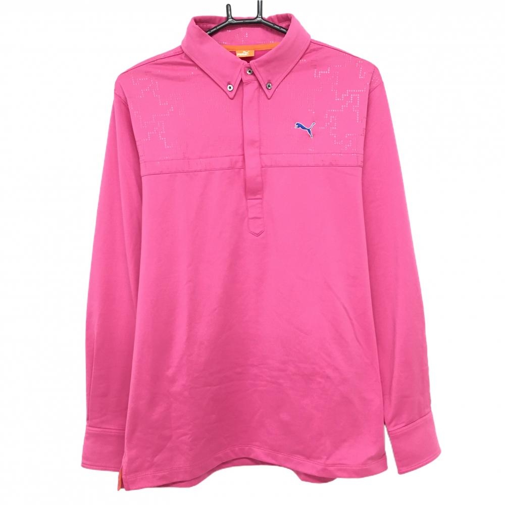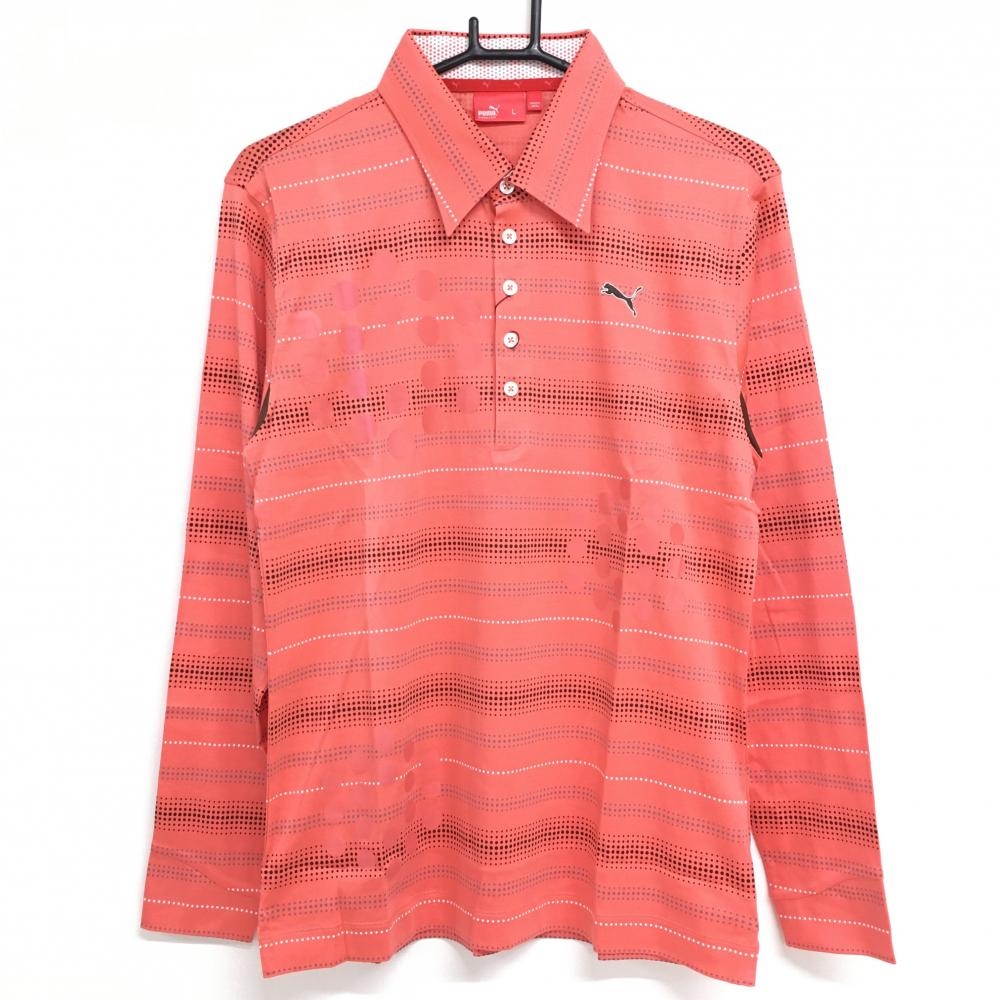 【美品】プーマ 長袖ポロシャツ レッド 前身頃地模様 襟・ロゴ白 レディース L ゴルフウェア PUMA