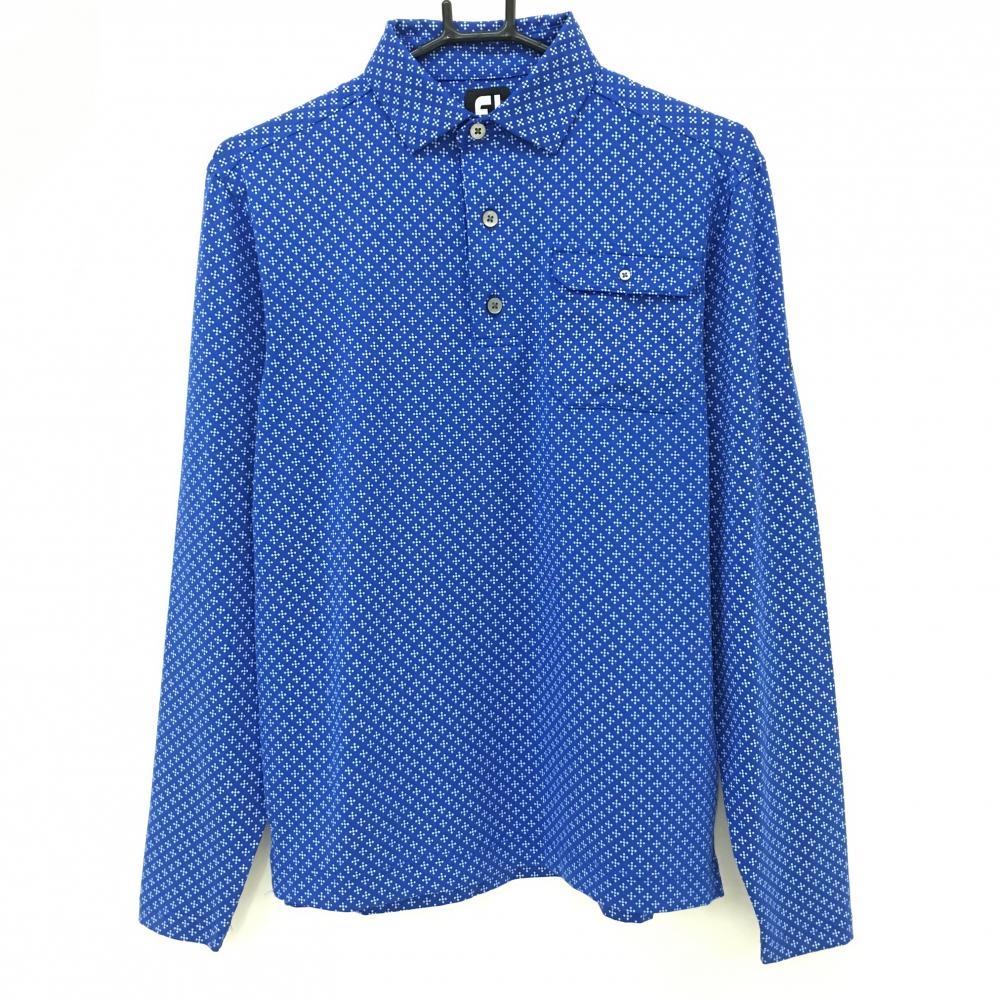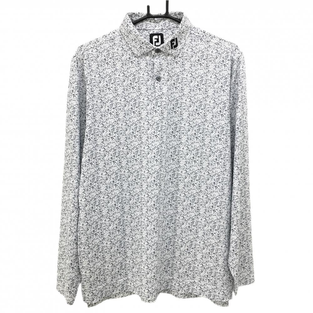 【美品】フットジョイ 長袖ポロシャツ ネイビー×ライトグレー 総柄 襟ロゴ メンズ XL ゴルフウェア FootJoy