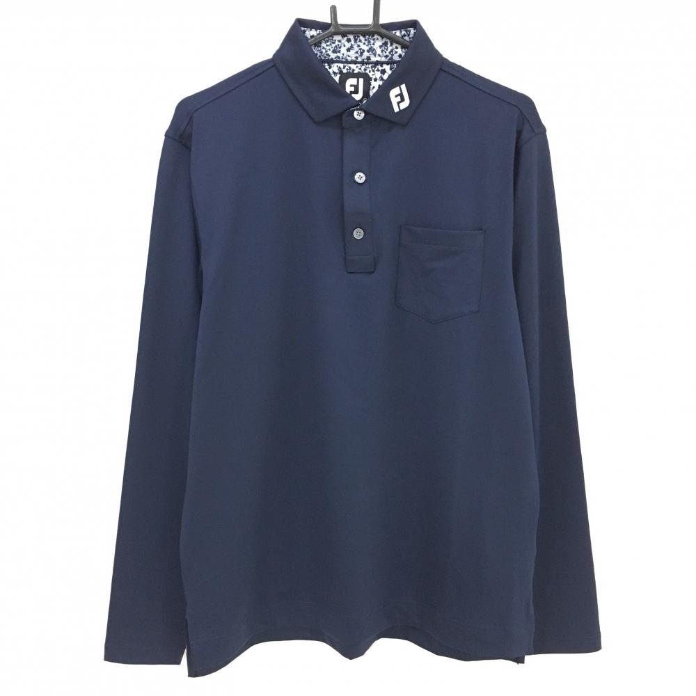 【超美品】フットジョイ 長袖ポロシャツ ネイビー×白 花柄 ボタンダウン ストレッチ メンズ XL ゴルフウェア 2024年モデル FootJoy
