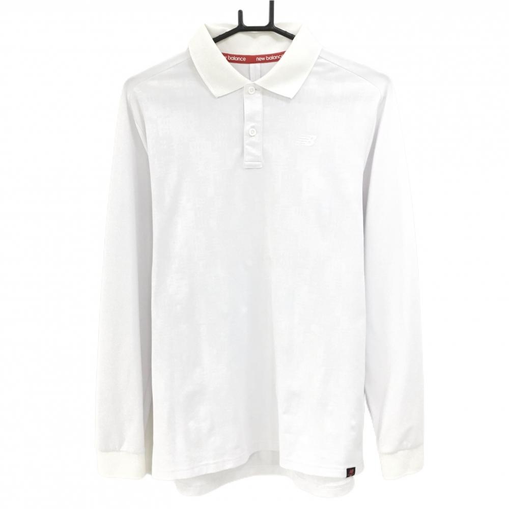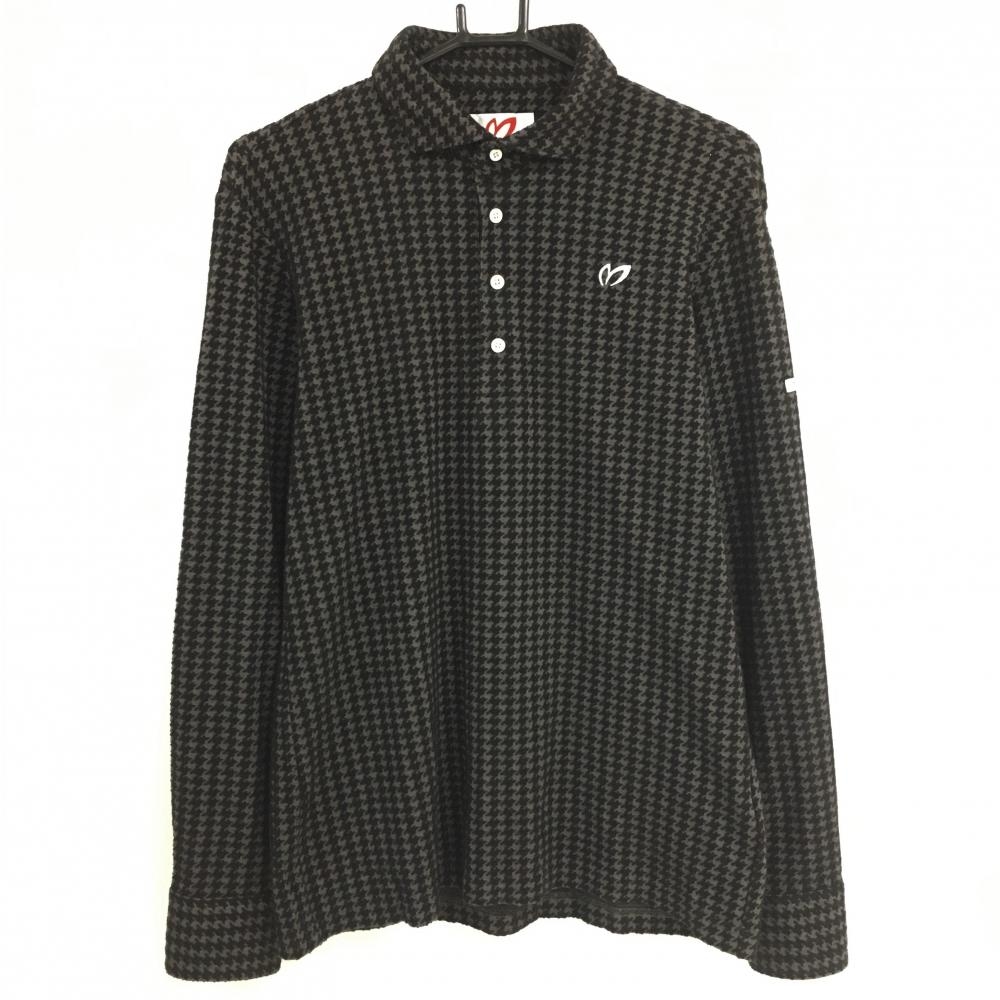 【超美品】ニューバランスゴルフ 長袖ポロシャツ 黒×グレー ロゴ総柄 裏起毛 メンズ 6(XL) ゴルフウェア New Balance