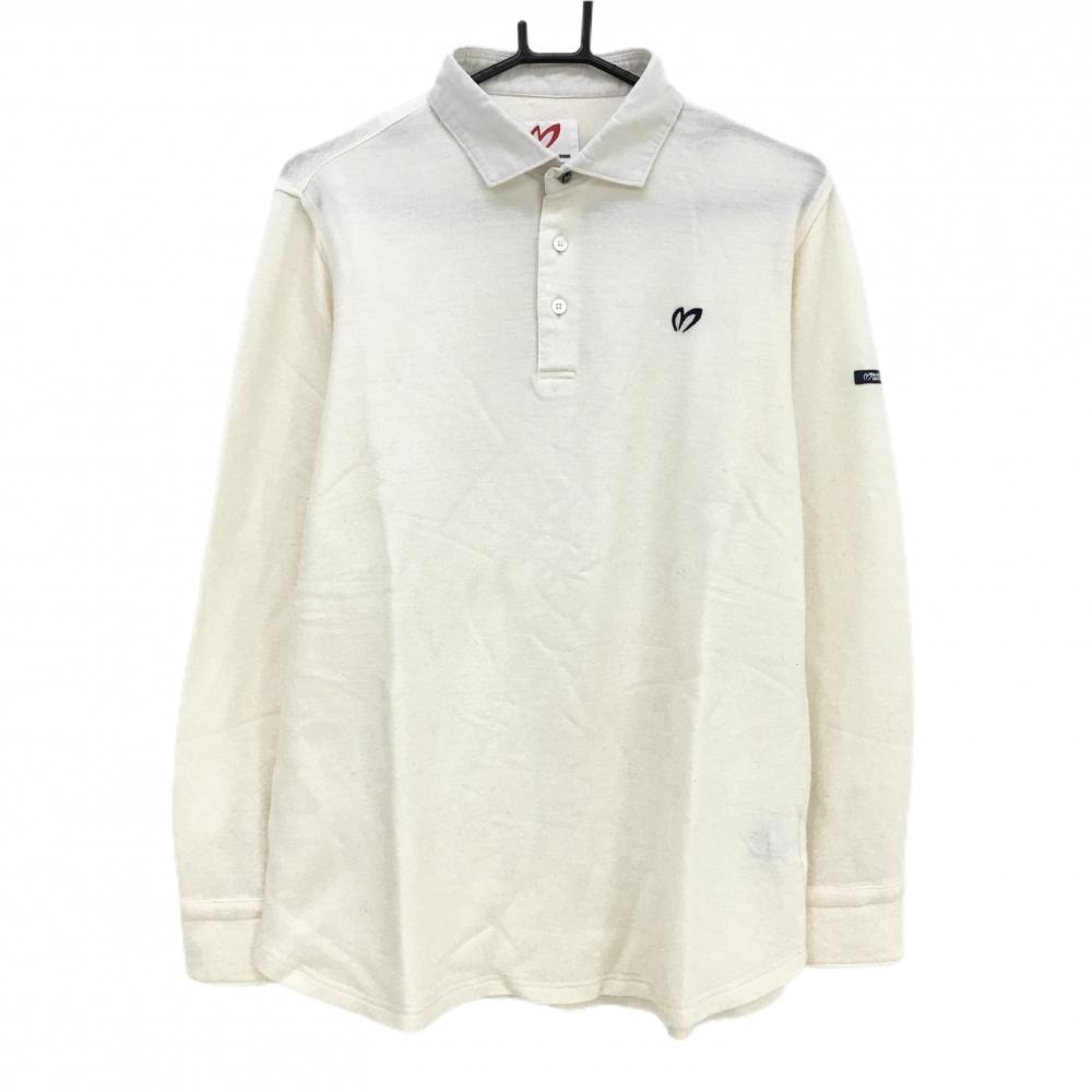 【美品】マスターバニー 長袖ポロシャツ アイボリー 襟コーデュロイ ウール混 メンズ 4(M) ゴルフウェア MASTER BUNNY EDITION