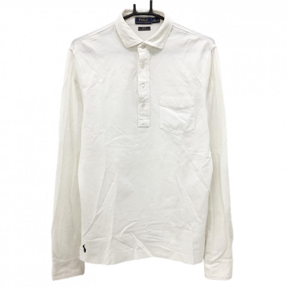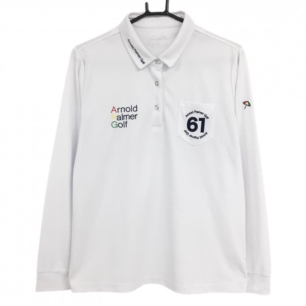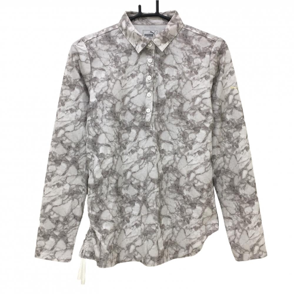 【美品】プーマ 長袖ポロシャツ 白 襟黒 胸ロゴ レディース L ゴルフウェア PUMA