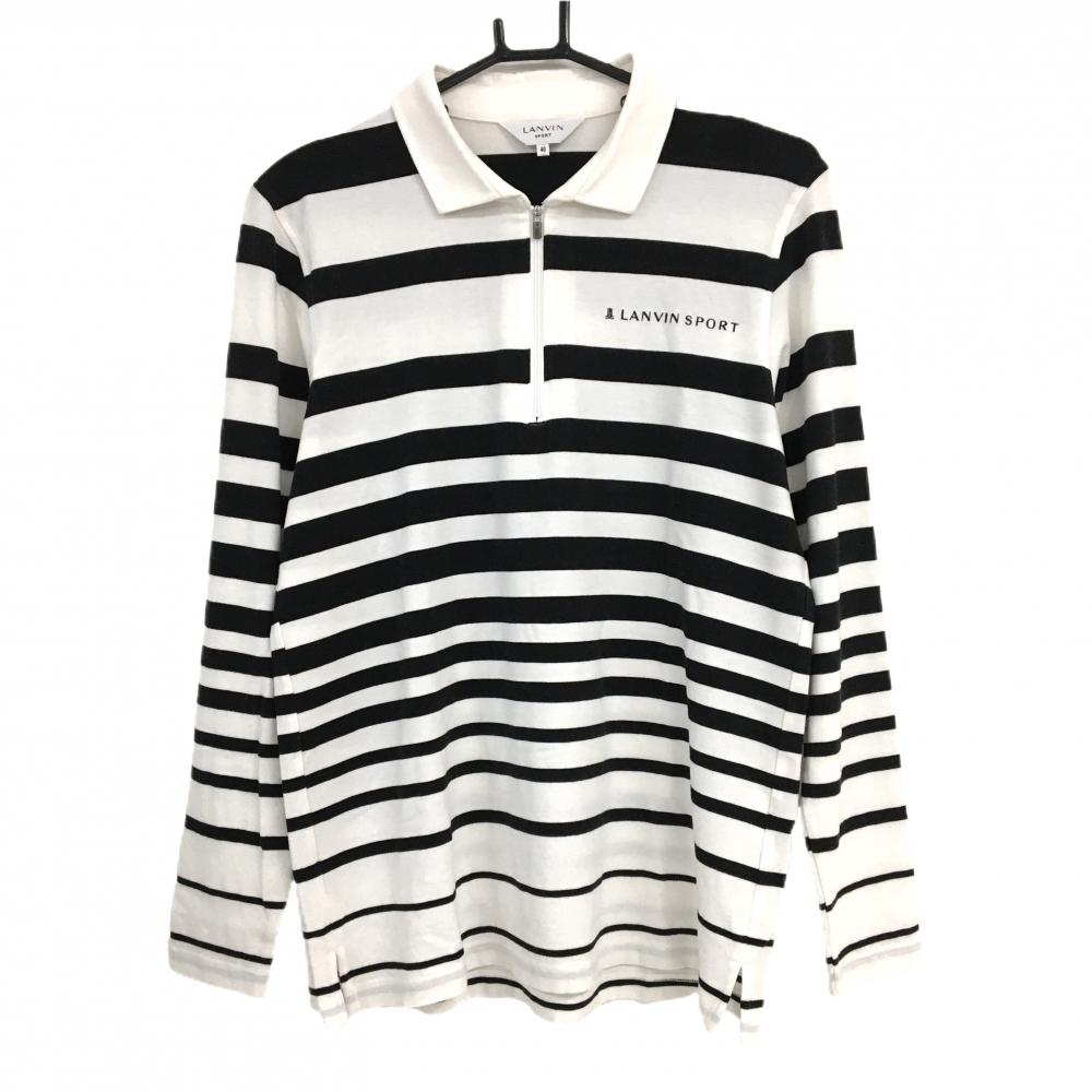 【超美品】バレンザポースポーツ 長袖ポロシャツ 黒×白 ロゴライン レディース 40 ゴルフウェア VALENZA PO