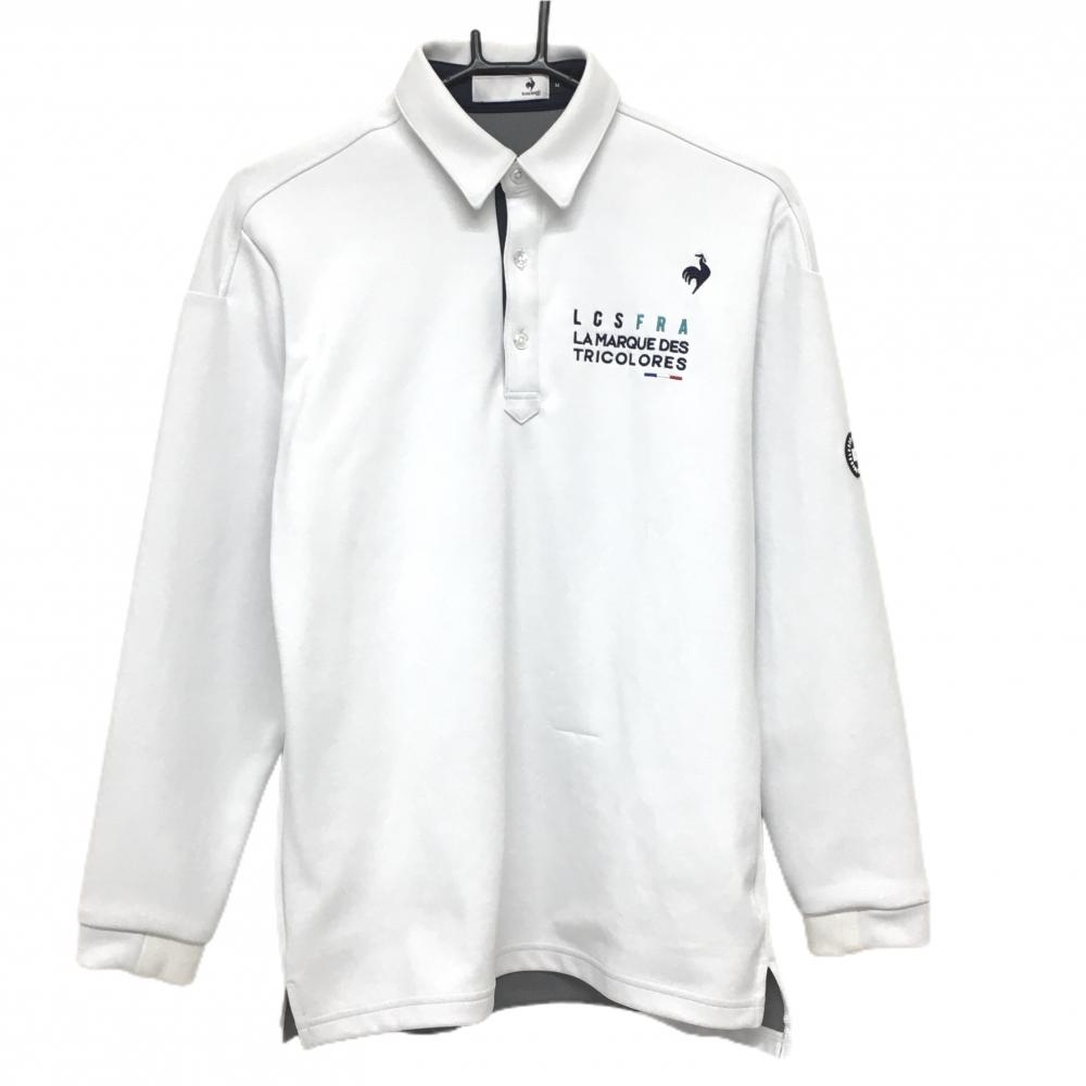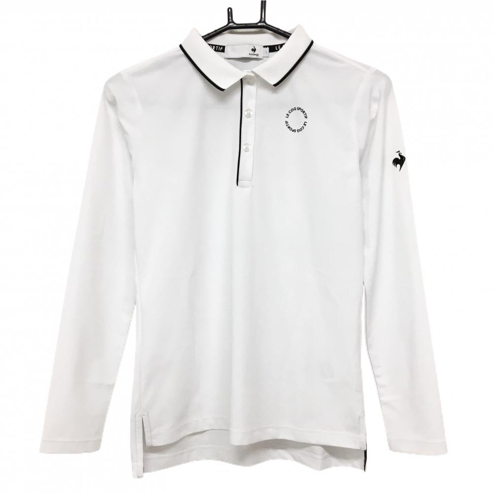 【美品】ルコックゴルフ 長袖ポロシャツ ネイビー×白 襟ロゴ 胸ポケット付 レディース L ゴルフウェア le coq sportif
