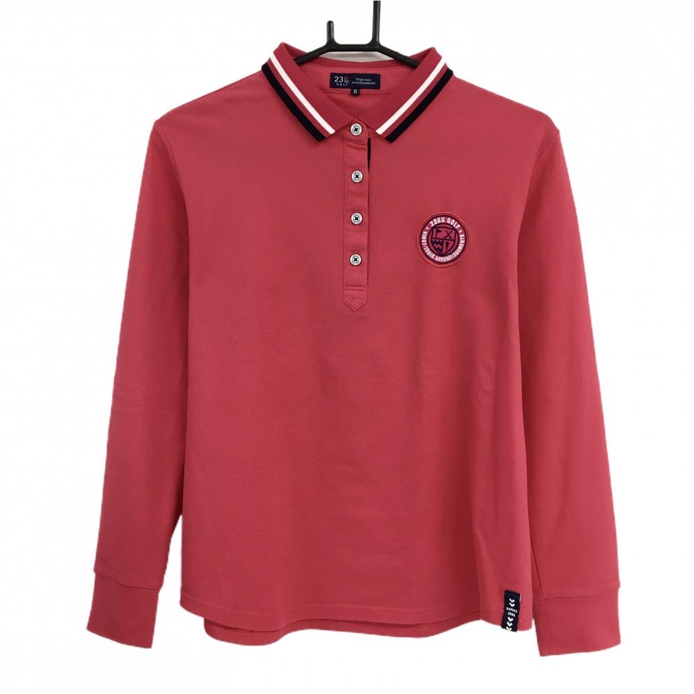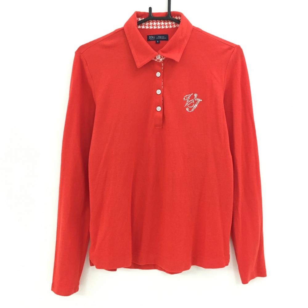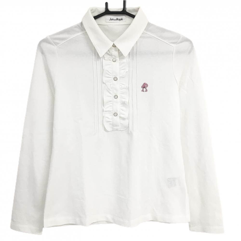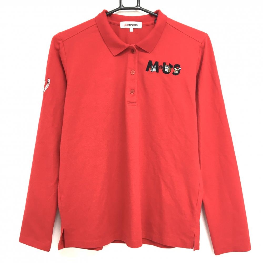 ジュンアンドロペ 長袖ポロシャツ レッド 胸元ワッペン ロゴボタン レディース M ゴルフウェア JUN&ROPE