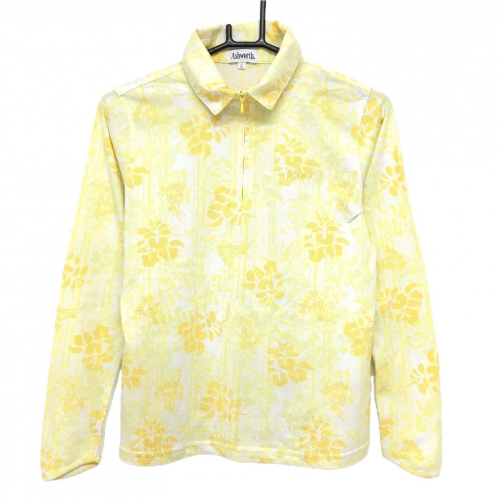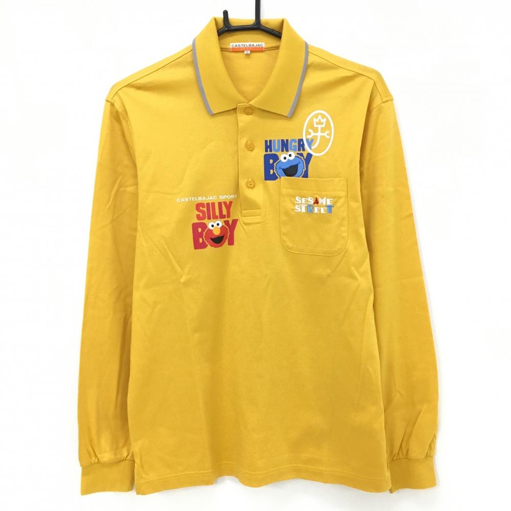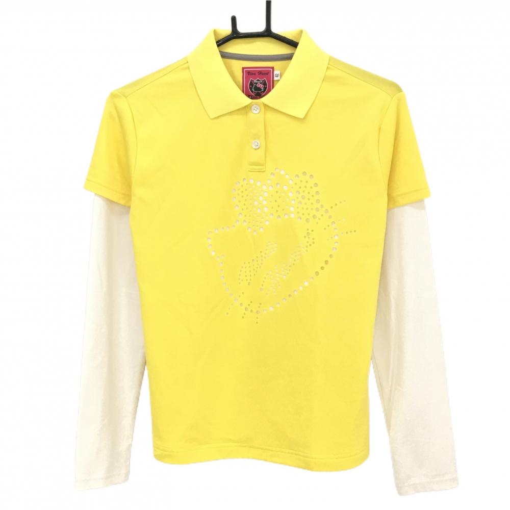 【超美品】アンパスィ 長袖ポロシャツ イエロー 胸元ワッペン ラインストーン レディース M ゴルフウェア and per se