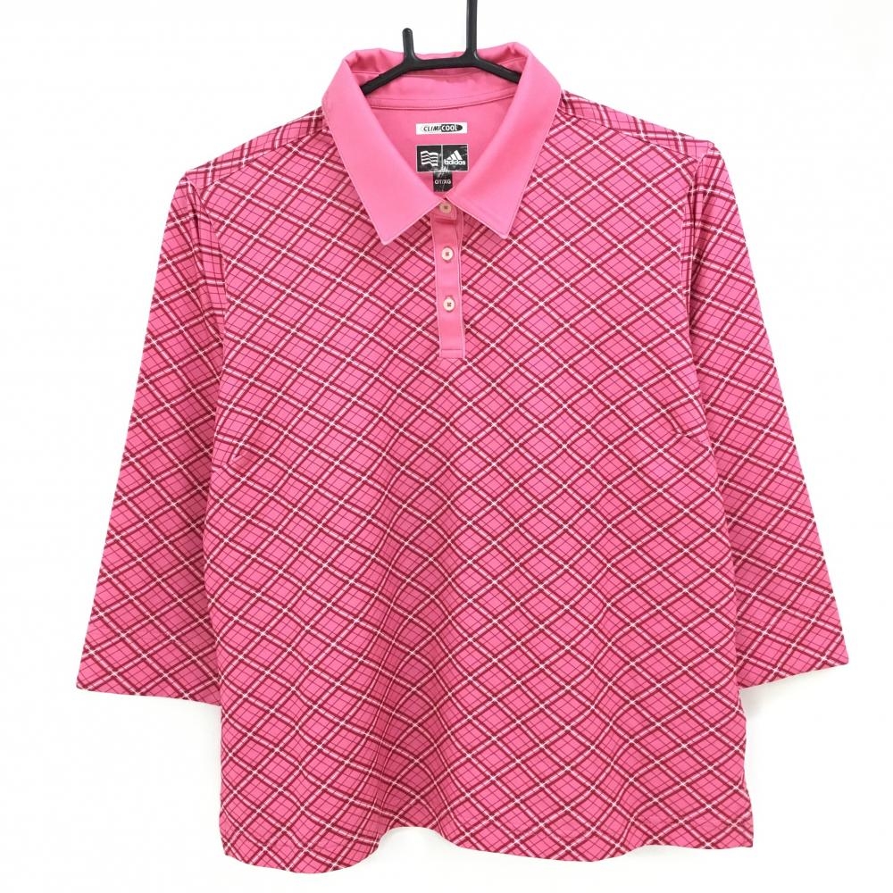 キャロウェイ 長袖ポロシャツ ピンク ロゴ白 前立て内側総柄 レディース L ゴルフウェア Callaway