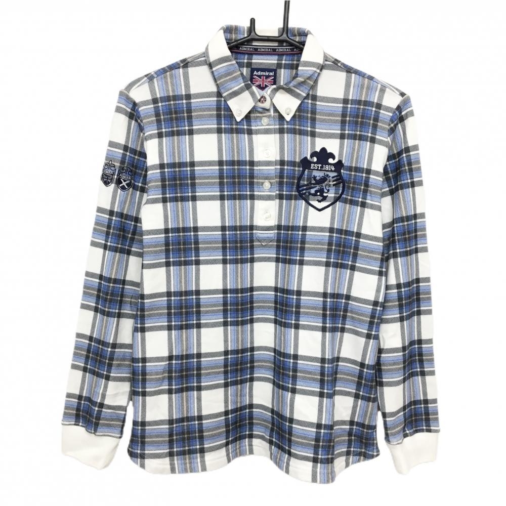 アドミラル 長袖ポロシャツ 白×ネイビー ロゴ刺しゅう 裏微起毛 メンズ LL ゴルフウェア Admiral