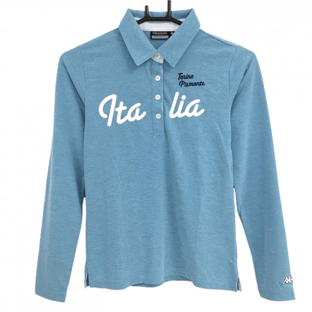 【美品】キスオンザグリーン 長袖ポロシャツ 白×ブルー×レッド フラッグ総柄 レディース 2(M) ゴルフウェア kiss on the green