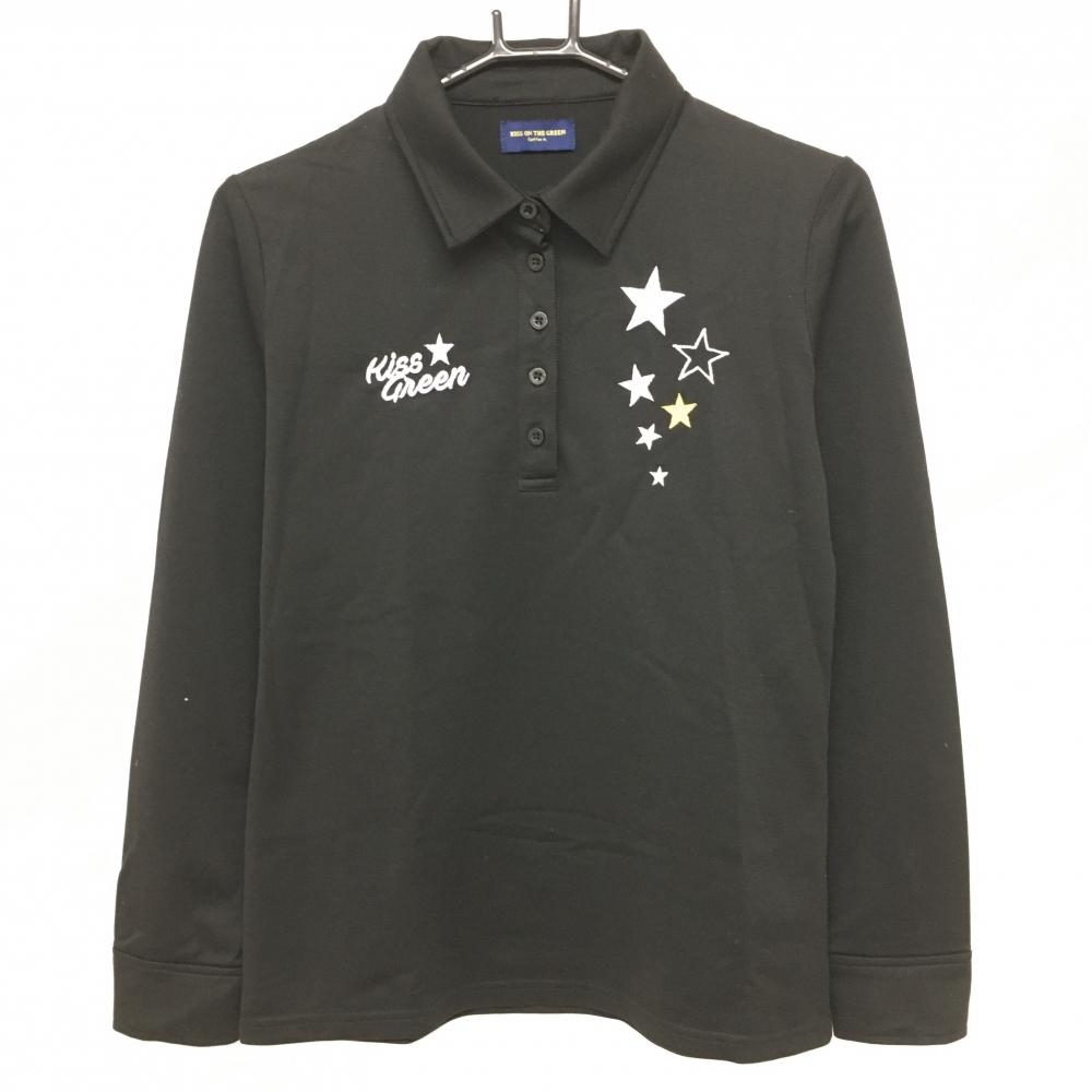 【新品】キスオンザグリーン 長袖ポロシャツ 黒×白 身頃千鳥格子 接触冷感 吸汗速乾 レディース 3(L) ゴルフウェア kiss on the green