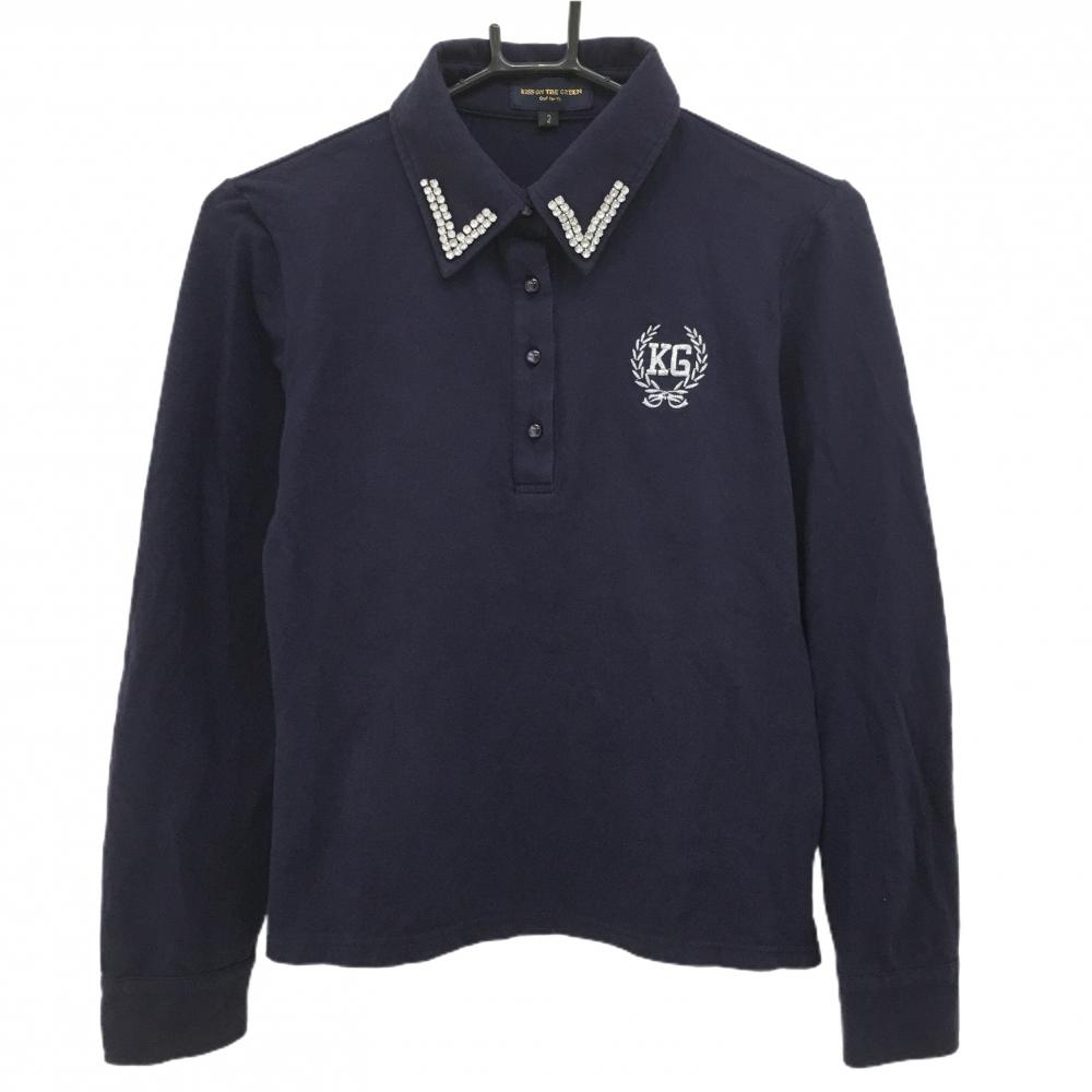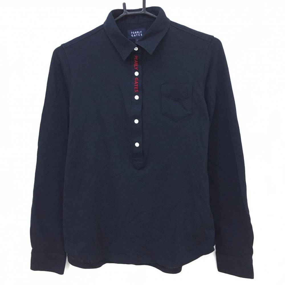 【新品】パーリーゲイツ 長袖ポロシャツ ネイビー ボタンダウン 袖ロゴ レディース 2(L) ゴルフウェア PEARLY GATES