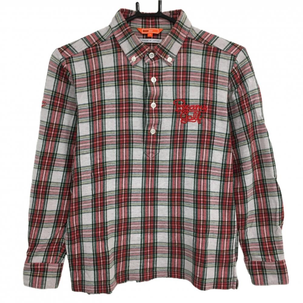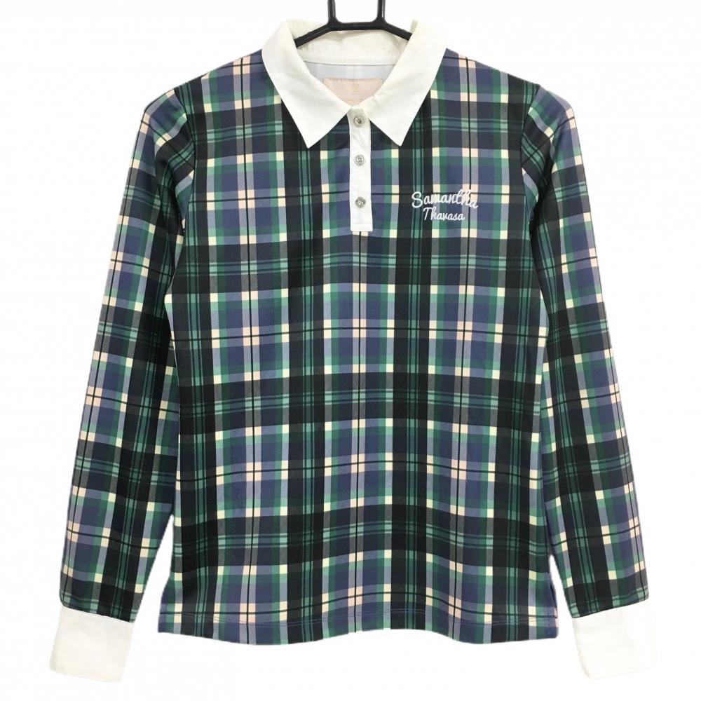 【超美品】ビームスゴルフ 長袖ポロシャツ グリーン×ネイビー チェック アクリル混 メンズ S ゴルフウェア 2024年モデル BEAMS GOLF