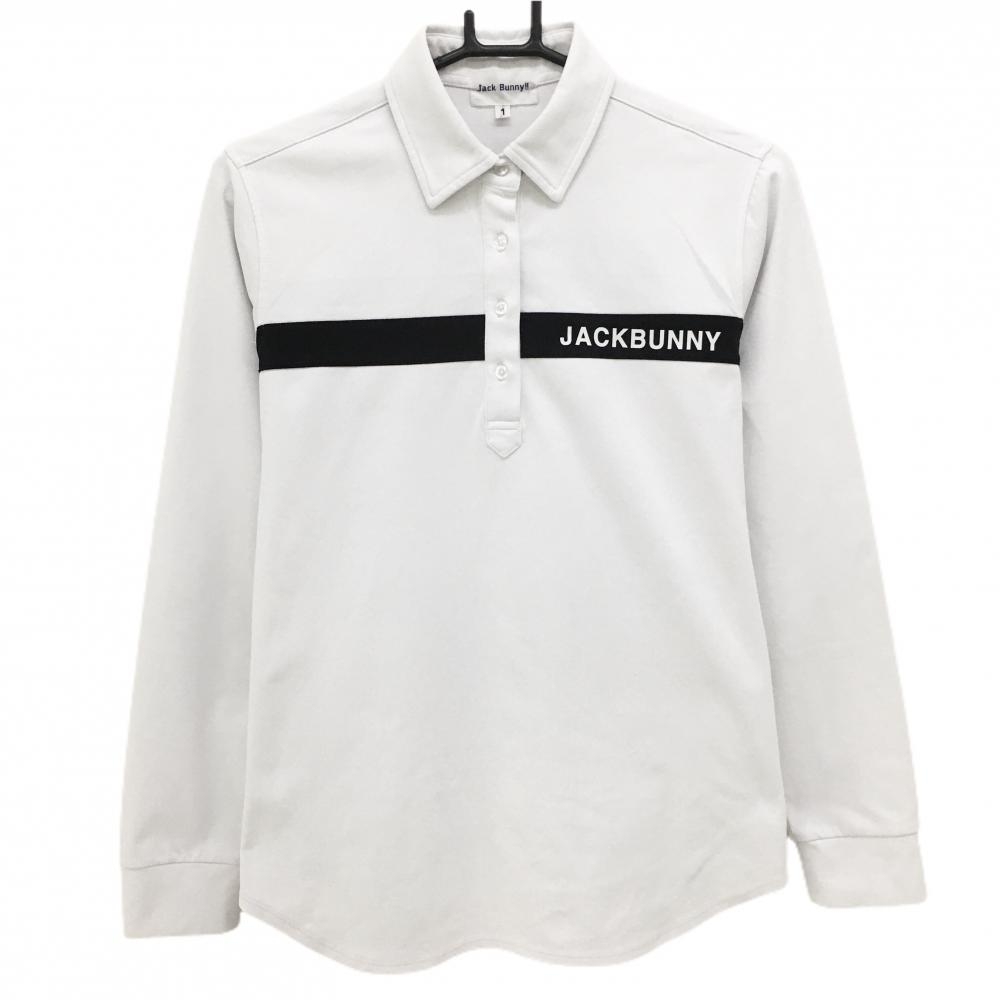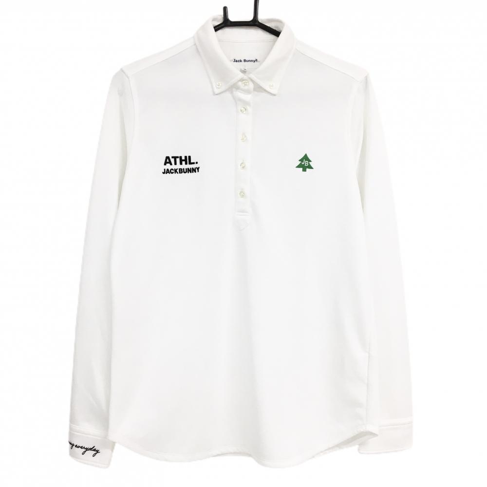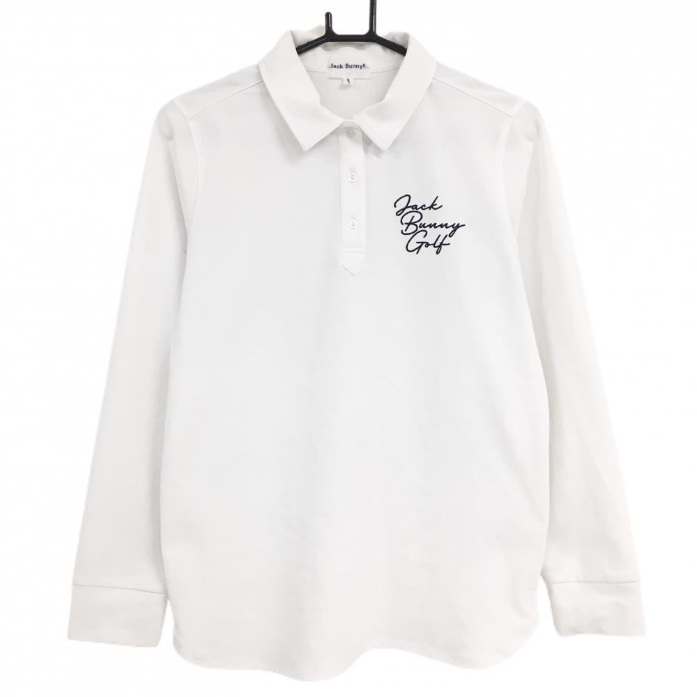 【美品】ジャックバニー 長袖ポロシャツ 白 ロゴネイビー 織生地 レディース 2(L) ゴルフウェア Jack Bunny