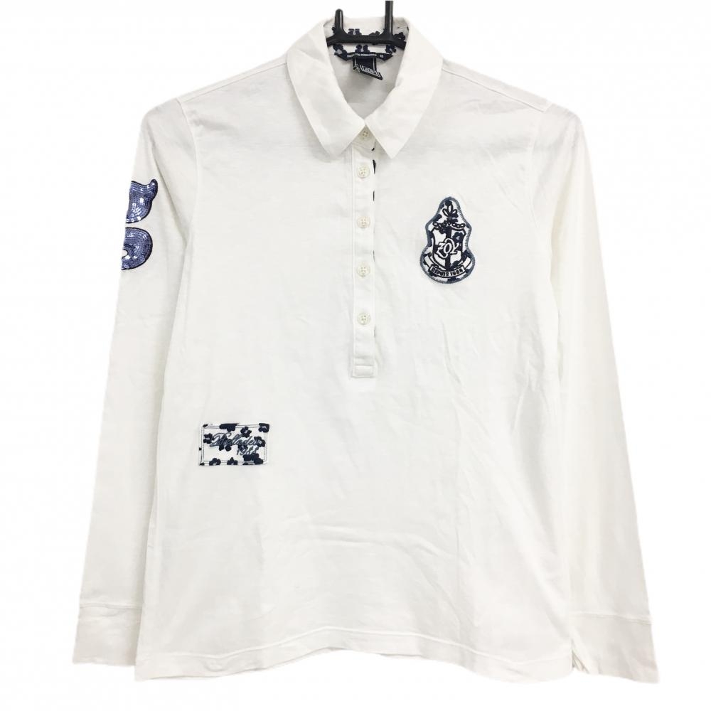 【超美品】マスターバニー 長袖ポロシャツ 白 前立て横ロゴ黒 スタンダードカラー レディース 0(S) ゴルフウェア MASTER BUNNY EDITION