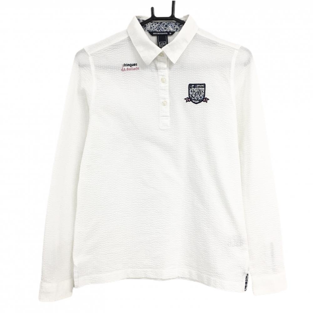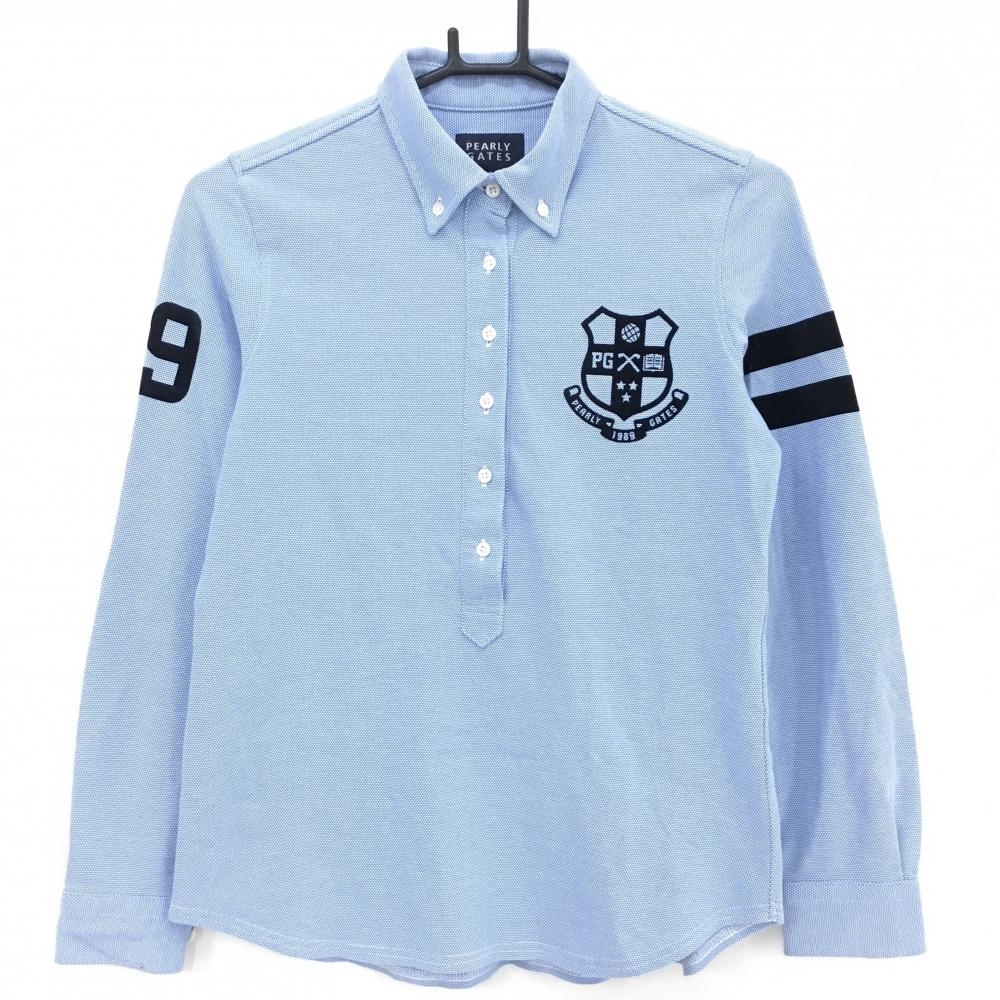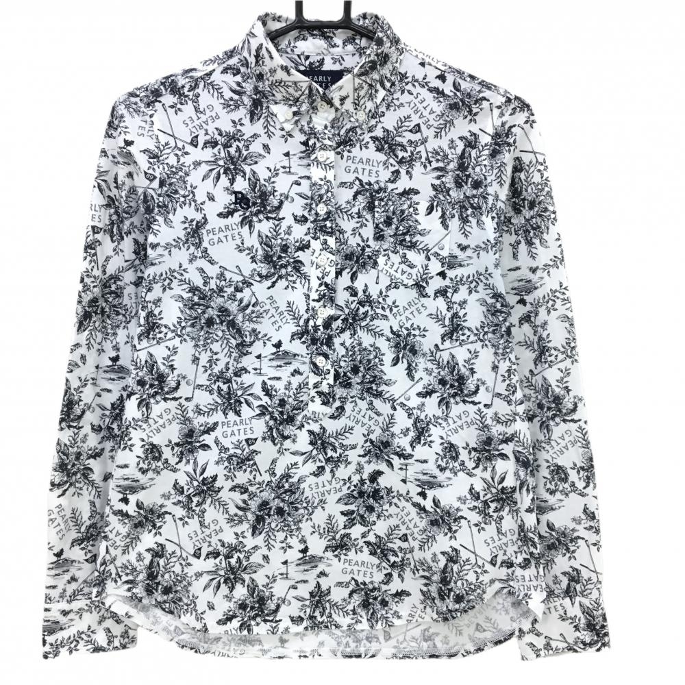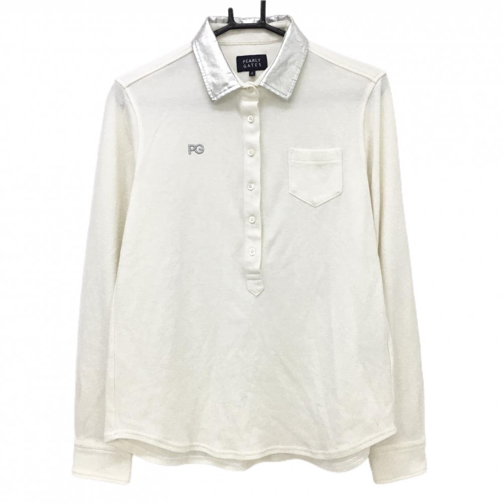 【美品】パーリーゲイツ 長袖ポロシャツ 白 前立て内側斜めストライプ ボタンダウン レディース 0(S) ゴルフウェア PEARLY GATES