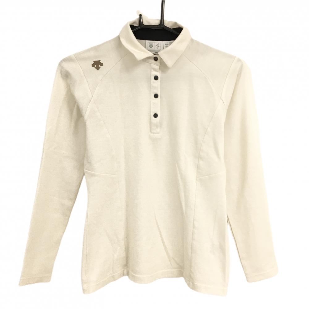 【新品】デサントゴルフ 長袖ポロシャツ ベージュ×ライトブルー 袖ロゴ 裏微起毛 スナップボタン レディース M ゴルフウェア DESCENTE