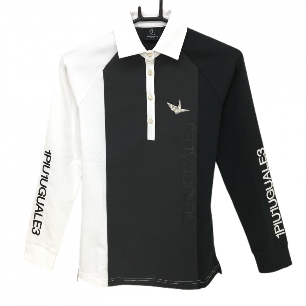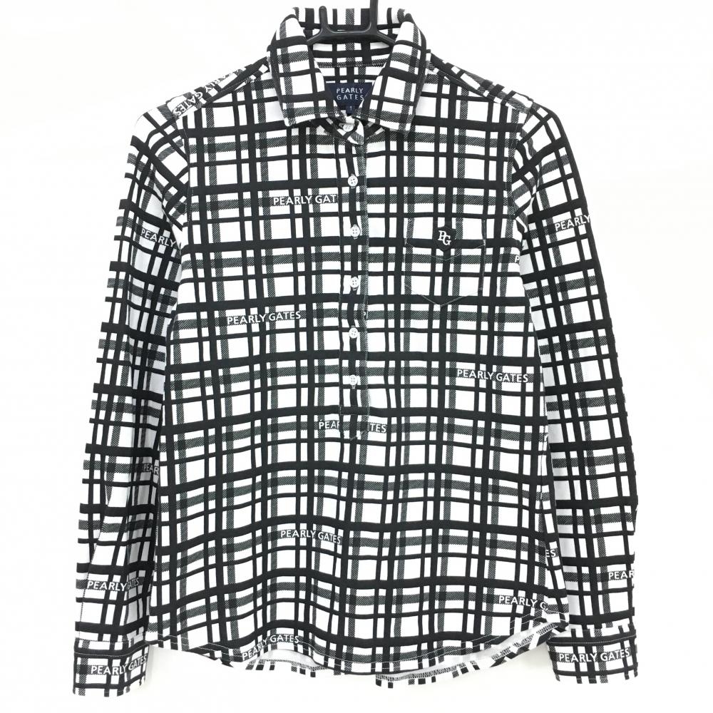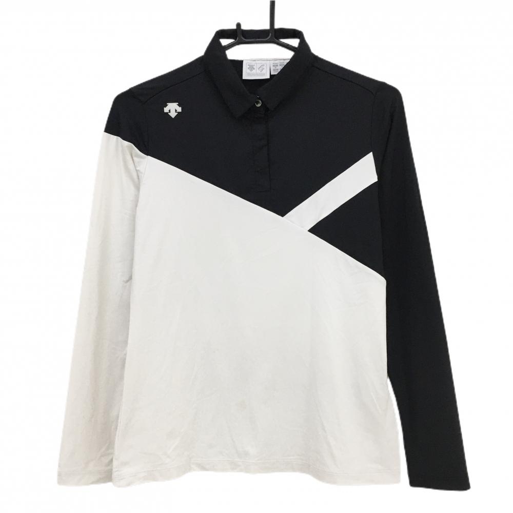 【美品】ブラックアンドホワイト 長袖ポロシャツ 白×黒 襟ブロックチェック 胸ポケットリボン レディース L ゴルフウェア Black&White