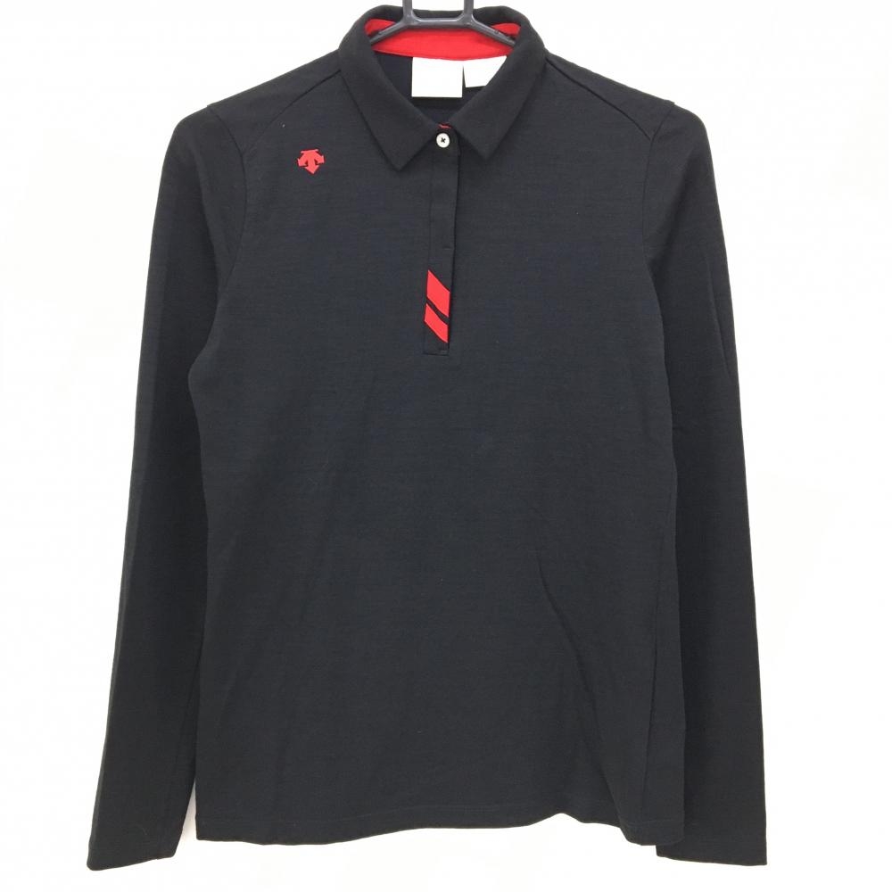 デサントゴルフ 長袖ポロシャツ ネイビー×白 肩ロゴ ストレッチ 中田英寿 レディース M ゴルフウェア DESCENTE