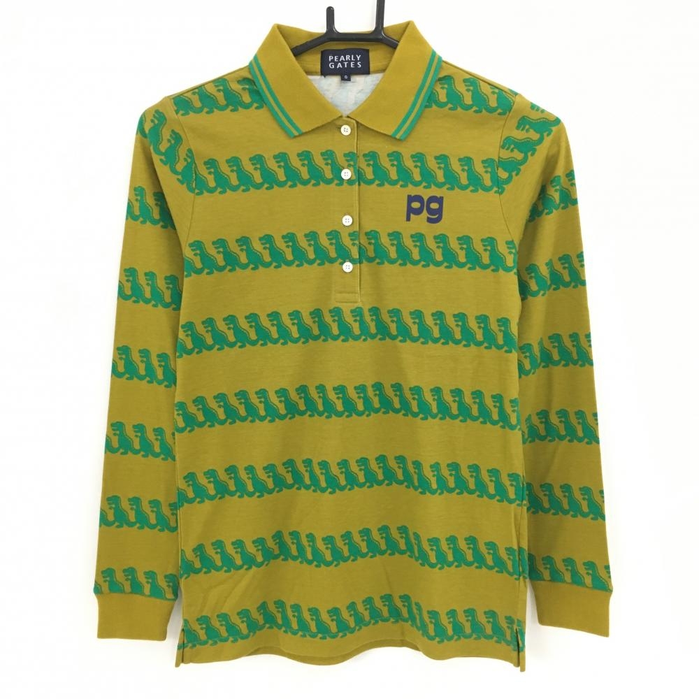 パーリーゲイツ 長袖ポロシャツ ネイビー×白 星総柄 レディース 0(S) ゴルフウェア PEARLY GATES