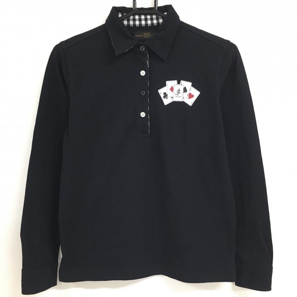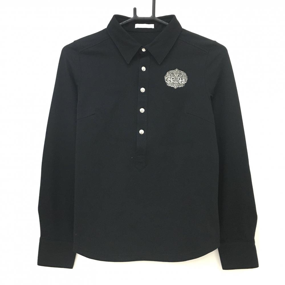【新品】CPG 長袖ポロシャツ 黒 ロゴ地模様 斜めストライプ調 ヒツジワッペン レディース 2(M) ゴルフウェア 2024年モデル CPG